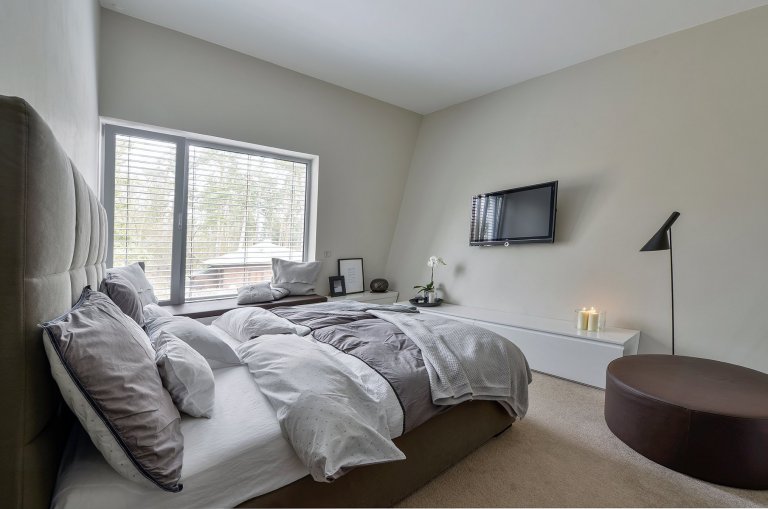 Naše studio do projektu vstoupilo ve fázi, kdy už byla přesně dána konstrukční a materiálová podoba domu. Návrh funkční dispozice prostor domu a stejně tak kompletní návrh interiéru byl naší prací. Bylo třeba se přizpůsobit mnoha netypickým prostorovým danostem interiéru tohoto netradičního domu. Manželé měli poměrně jasnou představu, jak by měl jejich interiér vypadat. Snažili jsme se o volné propojení okolní přírody s interiérem. Hlavním záměrem byla nadčasovost a praktičnost. Použité materiálové řešení a odstíny barev tvoří příjemnou neutrální základnu, kterou mohou podle potřeb nebo ročních období snadno proměnit a barevně oživit. Spolu s našimi kolegy Pavlou a Janem Záhorovými byl navržen parter a pochozí plochy kolem domu včetně kompletního návrhu řešení zahrady a osázení.