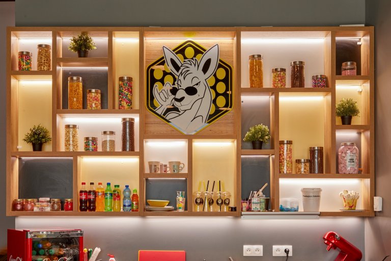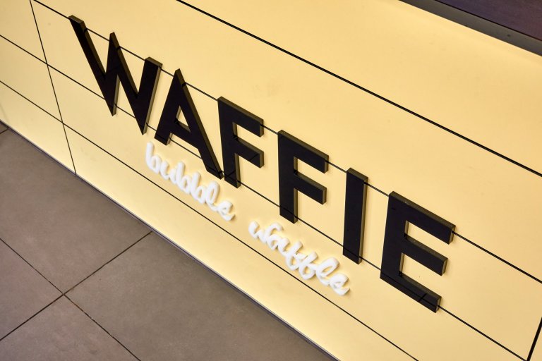 Zrealizovaný projekt prevádzky Waffie v nákupnom centre Eurovea v Bratislave. Kontrastné farebné kombinácie, doplnky, osvetlenie a samotné wafle vytvárajú jedinečnú atmosféru tohto priestoru.
