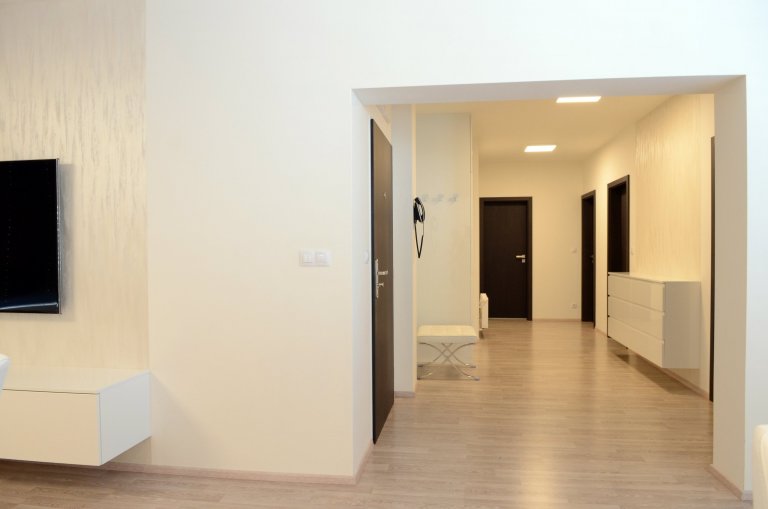 Už když jsme poprvé viděly plány prostorného bytu s výhledem na brněnskou přehradu, bylo nám jasné, že tento prostor má velký potenciál. Díky skvělým klientům a volné ruce při návrhu se nám povedlo jej krásně naplnit. Majitelka miluje bílou barvu a minimalismus, čemuž odpovídá i jeho vzhled. Díky jednoduchému nábytku, světlým barvám a velkým oknům působí celý interiér bytu neobyčejně vzdušně a optimisticky.