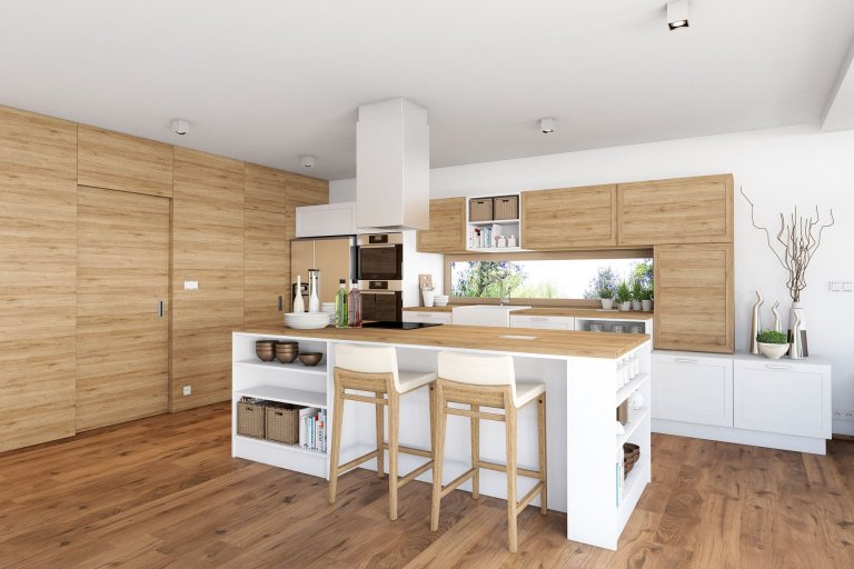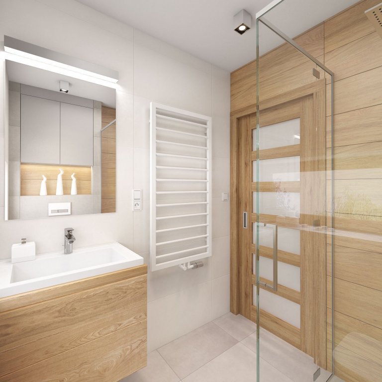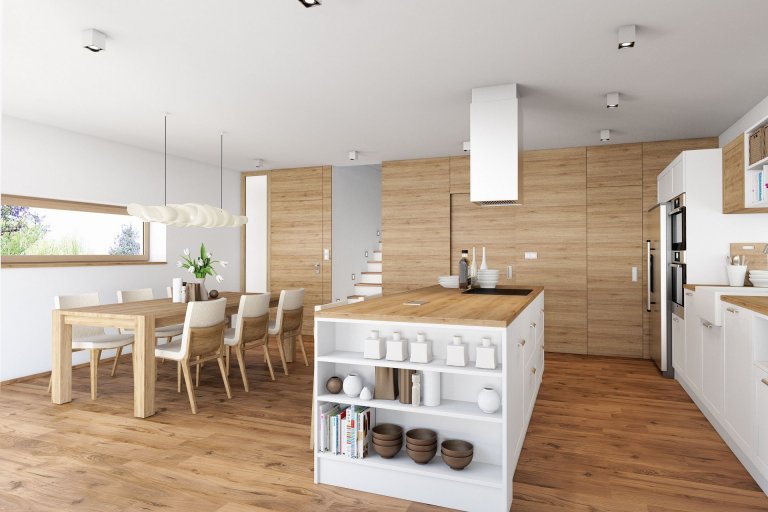 Návrh interiéru novostavby dvoupodlažního rodinného domu se sedlovou střechou. V interiérech se hojně objevuje dřevo, které je klientům velmi blízké. Díky tomuto použitému materiálu působí interiér příjemně a teple. Vytváří se tak pocit domova a spojení s přírodou. Větší část nábytku je vyrobena z masivního dřeva. Výjimku například tvoří keramický obklad v koupelnách s motivem imitujícím dřevo. Hlavní obytná část se skládá z velké kuchyně s jídelním stolem a obývacího pokoje. Kuchyňská linka je moderní s klasickými prvky a detaily. Dřevěný obklad přes celou jednu stěnu v sobě ukrývá schodiště a také vstup do zádveří, chodby a komory. V obývacím pokoji dotváří pocit domova jednoduchý, ale funkční krb. Velkými okny se interiér opticky přibližuje k okolní přírodě a v neposlední řadě také díky nim do interiéru dopadá spoustu světla.