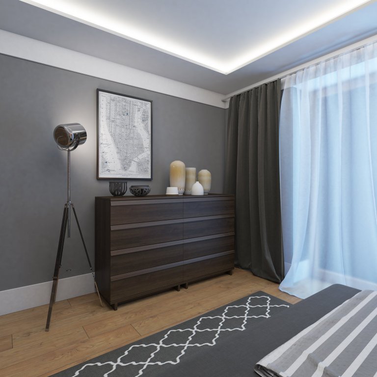 Kuchyně je pro majitele hlavním prostorem, který také slouží pro trávení času s přáteli, proto byla umístěna na jižní stranu objektu k nově vybudovanému portálu do zahrady. Oknem se do prostoru dostává spoustu denního světla, a tak je radost v této místnosti vařit a trávit čas. Obývací pokoj je umístěn na opačné straně místnosti, a nabízí pohodu a relaxaci ve večerních hodinách. V interiéru se objevují původní stropní trámy a také původní odhalené cihlové zdivo. Tyto prvky odkazují na historii stavby. Odhalené zdivo se také objevuje v ložnici za postelí. V obývacím pokoji je většina nábytků vyrobena na míru, zato ložnice je kompletně zařízena běžným a cenově dostupným nábytkem. To ovšem neubírá návrhu na stylu a funkčnosti. Styl koupelny odkazuje na to, že interiér je primárně určen pro mladého muže.