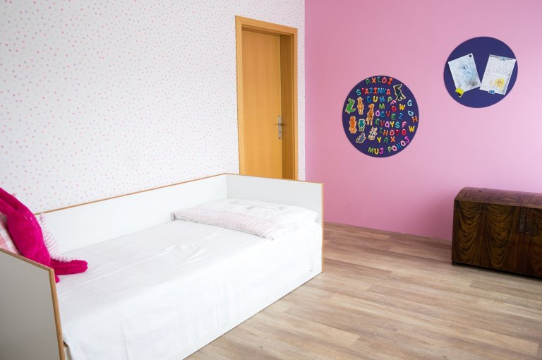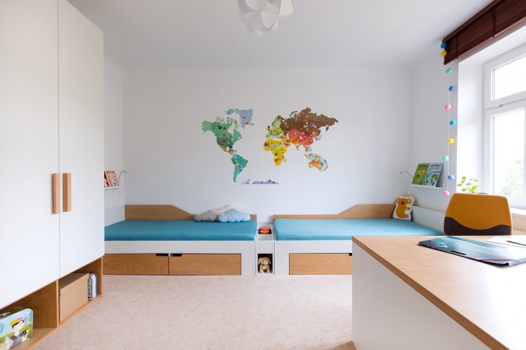 Šatní skříň je umístěna jinde, proto stačil prostor jen na prádlo, hračky a knížky.