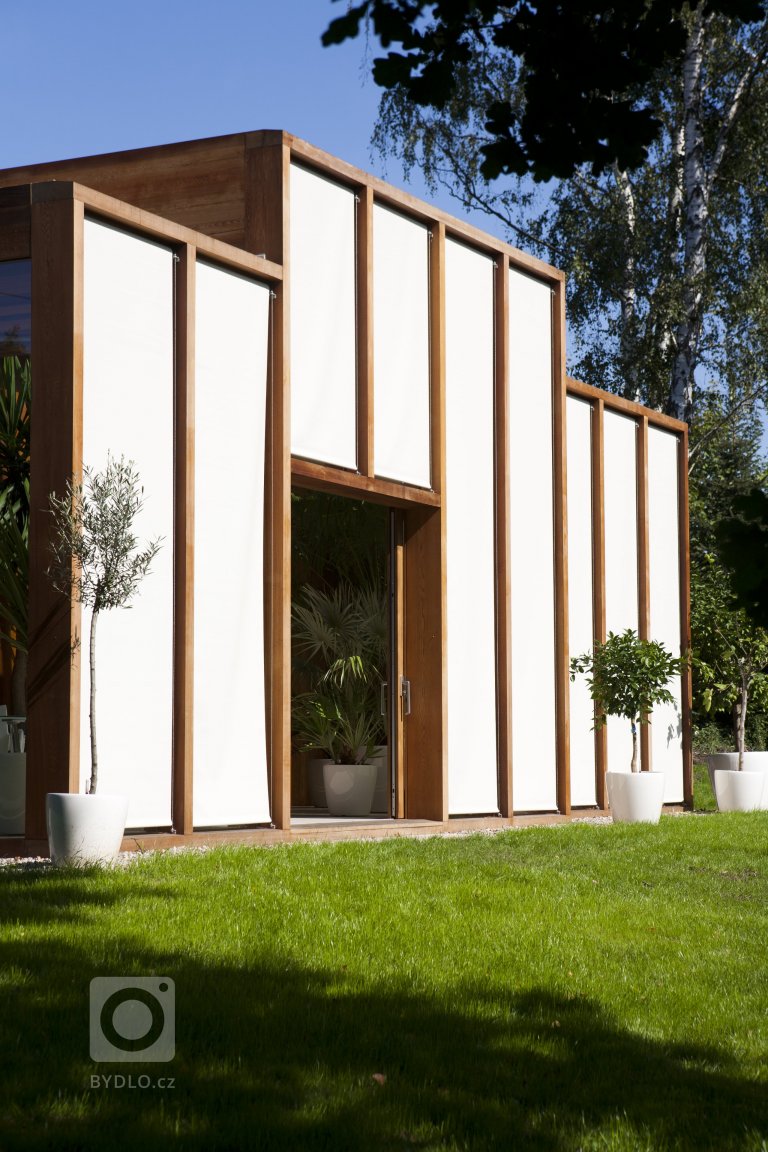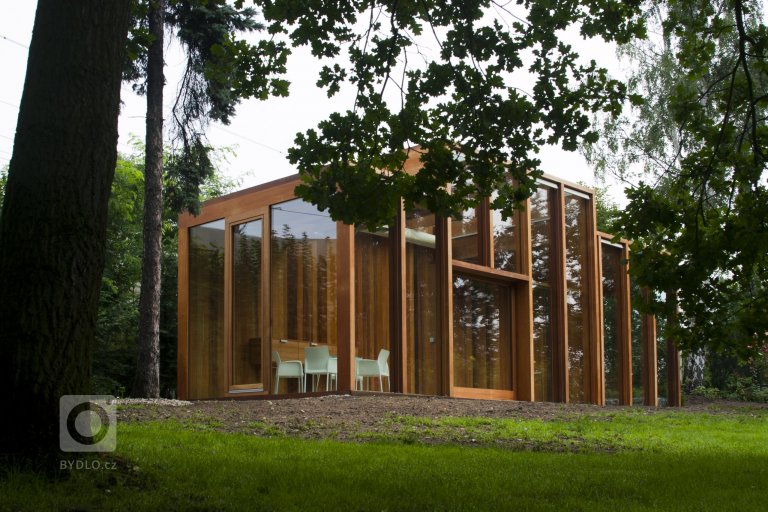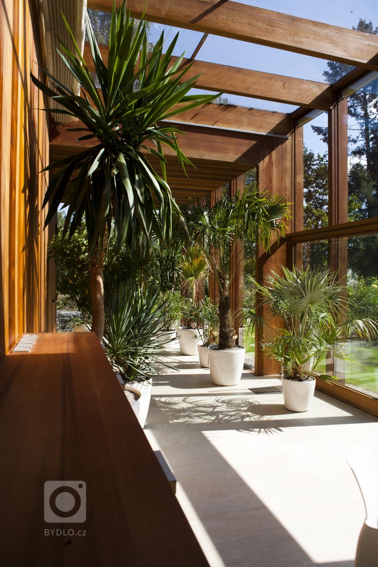 Stavba oranžerie vznikla na objednávku manželského páru, jako součást velké, parkově upravené zahrady, která byla založena ve 30. letech minulého století okolo rodinné vily. Návrh ideově vychází ze starých zámeckých oranžerií, které byly jednoduchými a velkorysými stavbami – jakýmisi galeriemi rostlin. Snahou bylo vytvořit objekt, který i přes své malé rozměry zachytí část oné velkorysosti a jednoduchosti starých oranžerií. Stavba, která naváže na kompozici zahrady, na její proměnnou barevnost, a která se stane místem pro odpočinek v zahradě. Kromě prostoru pro pěstování subtropických rostlin, zároveň poskytne azyl při práci na zahradě. Oranžérie je umístěna na nejvyšším místě mírně svažité zahrady, téměř v ose záhonu růží, který tvoří předprostor vily. Objekt je však pootočen k jihu, aby se hlavní jižní fasáda otevírala více do středu zahrady. Poloha vychází z důležité orientace ke světovým stranám a také z umístění vrostlých stromů. Tvar stavby je odrazem vnitřního prostorového uspořádání, které podléhá volbě různě velkých rostlin pěstovaných v oranžerii. Z toho důvodu byl navržen konglomerát tří prostorů, které mají jinou výšku a šířku, ale jsou spojeny pravidelným rastrem nosných rámů. Vnitřní prostor je vlivem měnící se výšky, šířky a úhlu oslunění nečekaně bohatý. Vstup je umístěn do střední dvorany s prosklenou střechou. Na dvoranu navazují dvě nižší křídla s plnou střechou. Zadní plná, masivní stěna tvoří pozadí pro pečlivě vybranou skladbu rostlin – juky, olivovníky a citrusy. Konstrukčním materiálem oranžerie je dřevo. Dřevo dává stavbě archetypální vzhled a navazuje na podzimní barevnost zahrady. Podzim je období, kdy se část rostlin přesouvá do interiéru oranžerie a stavba začíná opravdu žít. Vlastní výběr dřeva byl jednou z nejsložitějších etap projektování a realizace. Prvotní představa pracovala s masívním materiálem (s čitelnou strukturou), který byl vnímán jako zásadní pro atmosféru stavby. Neméně důležitým faktorem je, že nosné stojky rámů slouží přímo pro osazení skel. Zasklení je osazeno do přesně vyfrézovaných drážek, které nechávají minimální vůli pro kroucení dřeva. Po několika kolech zkoušení a vzorkování zvítězil červený cedr. Byl vybrán cedr bez suků, který se nechal po výrobě jednotlivých prvků napustit bezbarvým olejem. Zpracování se netradičně ujala prvotřídní nábytkářská firma, která byla nakonec jako jediná schopná provést stavbu v požadované kvalitě. Vnitřní prostředí oranžerie se svými parametry blíží přirozenému prostředí subtropických rostlin. V chladných měsících je zde udržována teplota 8 stupňů pomocí tepelného čerpadla. Proti přehřívání je stavba chráněna venkovními roletami a střešním baldachýnem.