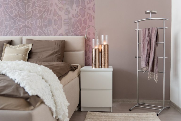 Původní velmi tmavý obývací pokoj se novým bílo-modro-béžovým laděním proměnil v příjemně světlý, svěží prostor. Výrazné tapety a koberec s pastelovými vzory dodaly místnosti neotřelou eleganci severského stylu s retro nádechem, který velice vkusně doplnily obrazy květin, jež si majitelé přáli zachovat. Navržené minimalistické pojetí nábytku (z části vyrobené na zakázku) řeší veškeré požadavky klientů na vybavení pokoje. Vedle větší rozkládací sedačky s podhlavníky a úložným prostorem zde najdete rozkládací jídelní stůl, prostornou knihovnu a vitrínu na porcelán. Díky důmyslnému vnitřnímu členění vznikl ve skříni také dostatek úložného prostoru i praktický pracovní koutek, který lze velmi snadno skrýt před zraky návštěv jednoduchým zavřením dveří. Interiér ložnice zaujme svým jednoduchým, čistým zpracováním a decentní barevností. Moderní tapeta i vkusně zvolené doplňky působí luxusně a dodávají pokoji velmi příjemnou intimní atmosféru