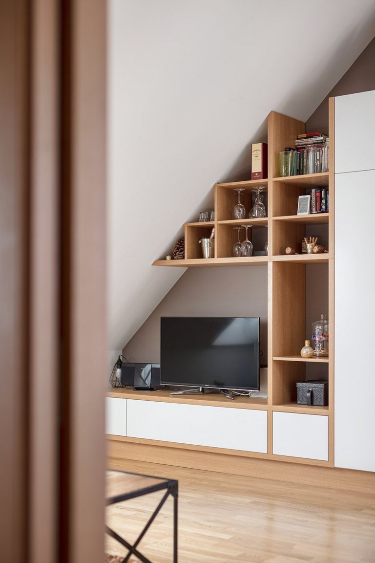 Takto byla prezentována naše realizace bytu 3kk v časopise o bydlení, aneb příběh o tom, jak na 65m2 v podkroví plnohodnotně uspořádat byt se dvěma ložnicemi, koupelnou a obývacím pokojem s kuchyní bez kompromisů.