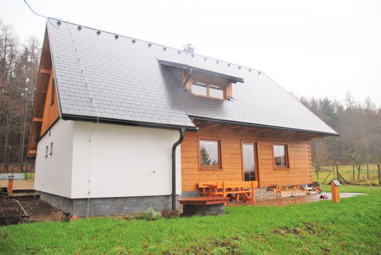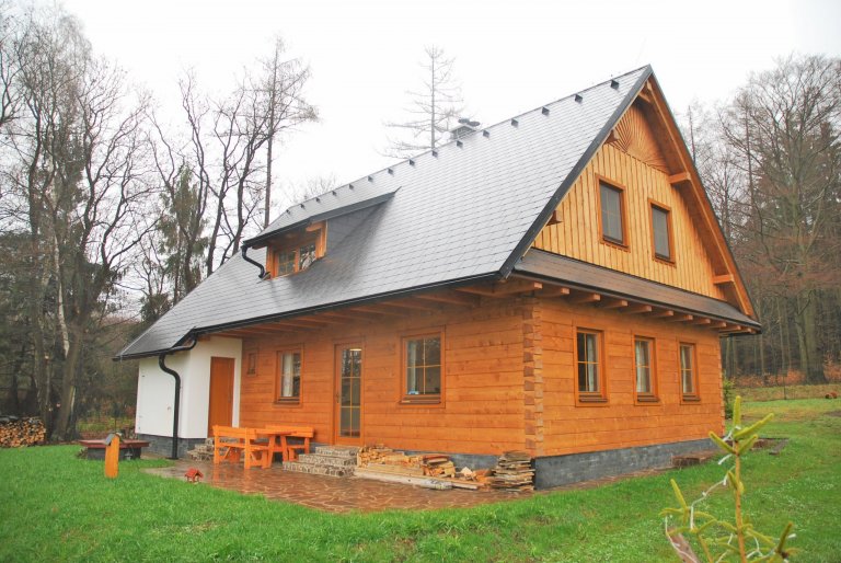 Tato tradiční poloroubenka s podlomenicí a sluníčkem ve štítu je vystavěna ze smrkových vysušených hranolů a krásně se hodí do okolní přírody. Svým majitelům poskytuje krásné a zdravé bydlení. Více informací o naší technologii a činnosti naleznete zde: www.moderni-sruby.cz nebo na našem fb účtu https://www.facebook.com/OKPyrus/?ref=br_rs