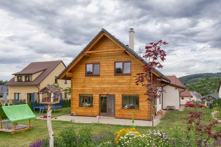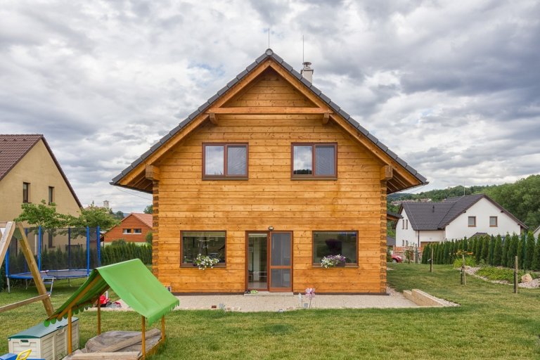 Jedná se o poloroubenku ze smrkových vysušených hranolů pro mladou rodinu. Tento dům splňuje požadavky na trvalé bydlení. Nachází se v řadové zástavbě, ale svým konceptem nenarušuje celkový ráz ulice, ve které jsou jinak pouze zděné domy. V přízemí se nachází zádveří, technická místnost, koupelna, pokoj/pracovna, kuchyň a denní místnost. Ve druhém patře najdeme tři ložnice, koupelnu a samostatné wc. Více informací o naší technologii a činnosti naleznete zde: www.moderni-sruby.cz nebo na našem fb účtu https://www.facebook.com/OKPyrus/?ref=br_rs