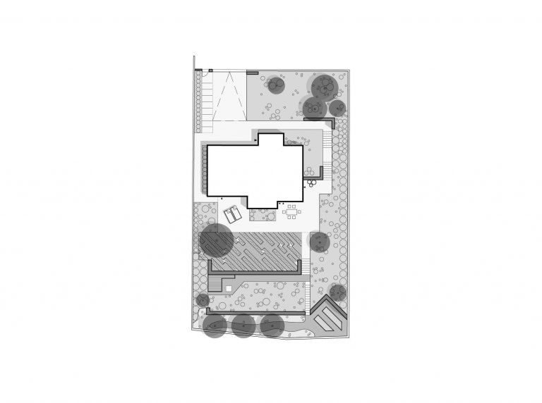 Výsadby levandulí, jsou zde zorganizovány do diagonálních pásů. Nádherně voní a kvetou, ale vytváří i stálezelený ornament pro pohledy z patra domu. Narušují pravoúhlou jednotu tvarů a vnášejí hravost, jdou zkrátka přes čáru.