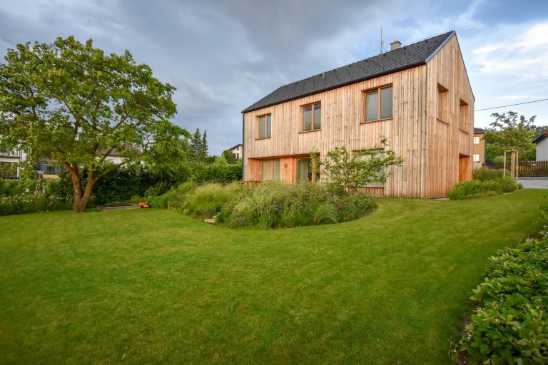 Potvrzují známé pravidlo, že v jednoduchosti je krása. Zahrada svým řešením navazuje na stavbu, která přesně vystihuje archetypální představu domu. Když řeknete, ať už dítěti nebo dospělému, aby nakreslili dům, vypadá přesně takto: