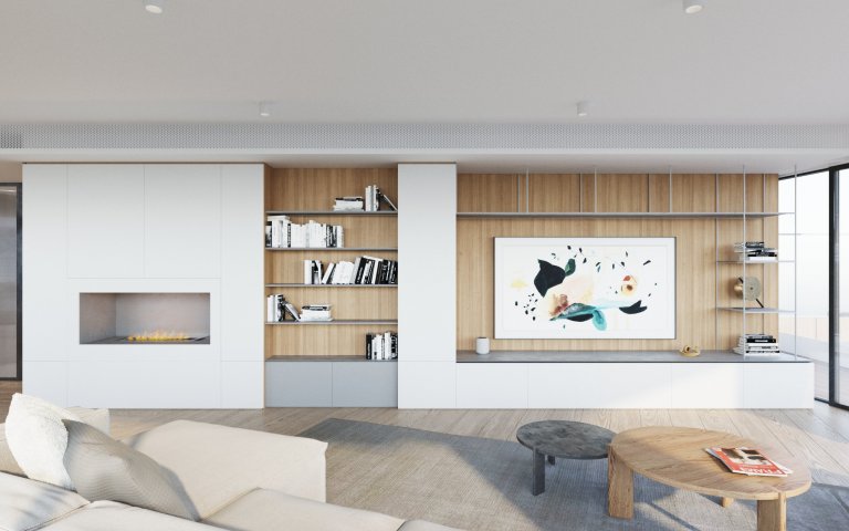 Náš návrh reflektuje kalifornskou estetiku – používá neutrální paletu barev, akcentuje otevřené vzdušné prostory a dostatek přirozeného světla. Bytový design reprezentuje minimalismus a nadčasovost, který se pro moderní penthouse hodí. Inspirace přírodními materiály a barvami decentně kontrastuje s minimalistickým vzhledem chromových doplňků.