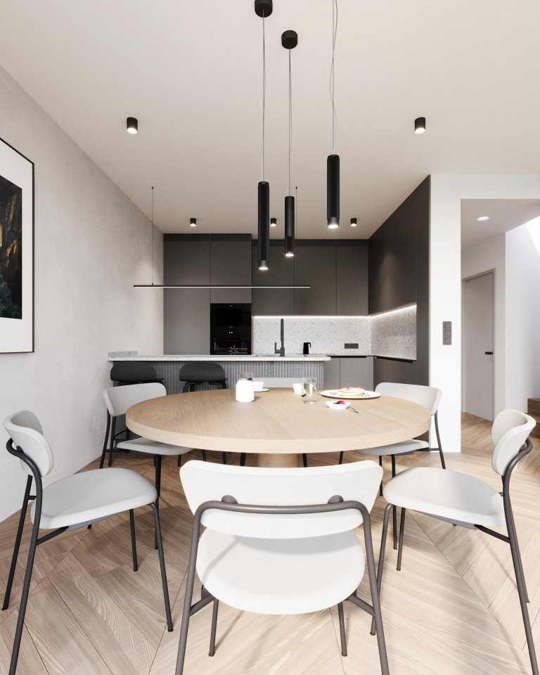 Interiér novostavby řadového rodinného domu na Praze 10 se nese v duchu praktičnosti a funkčnosti. Mladý manželský pár se pro realizaci rozhodl s ohledem na to, že se jejich rodina teprve bude rozrůstat. Respektujeme přání klienta a navrhujeme klidný světlý prostor, akcentující přírodní materiály.