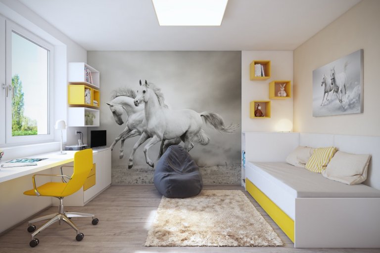 V projekte som vypracoval vizualizácie pre dennú zónu, chodbu, rodičovskú spálňu so šatníkom a samostatnou kúpelňou. V projekte som zvizualizoval aj detské izby. Izba pre chlapca bola navrhnutá vo farbách futbalového klubu Real Madrid, nakoľko chlapec je veľkým fanúšikom tohto tímu. Dievča je zas veľkou milovníčkou koní. Na prianie klienta som vypracoval aj vizualizácie exteriéru.