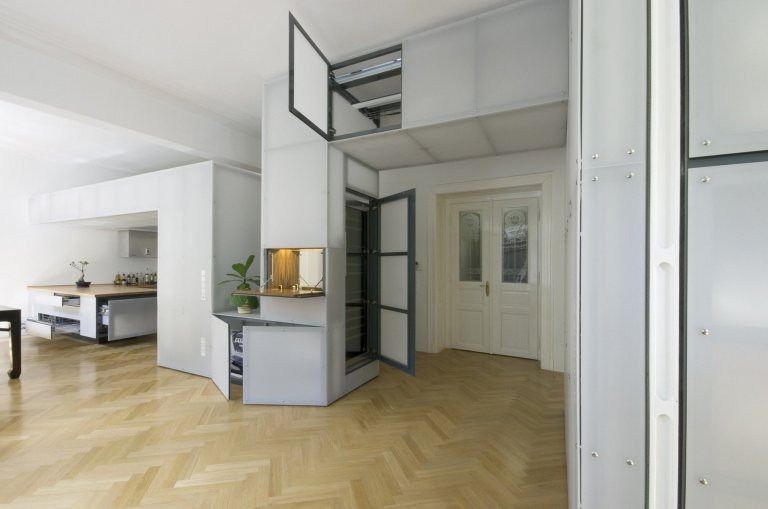 Objekt má dvě podlaží - nadzemní obytné a podzemní, ve kterém jsou umístěny veškeré technické a skladové prostory. Nadzemní část se skládá ze dvou materiálů - tvrdé „skořápky“ a měkkého vnitřku. Ochrannou slupku tvoří sklocementové desky přesného rastru osazené na čelních stěnách, soklu a atice. Vnitřní měkká část domu, která ukrývá život je navržena z dřevěných fasádních prken ze sibiřského modřínu. Vzniká tak kontrast mezi pevným a nestárnoucím materiálem, který chrání obyvatele domu a přírodním dřevěným prvkem, který žije se svými obyvateli a v průběhu času se mění.