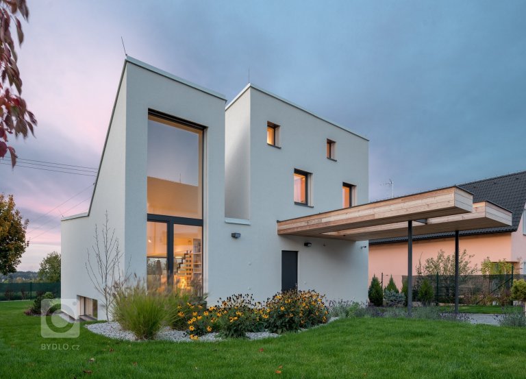 Navrhovaný objekt je citlivě zasazen do území, dbá na pozitivní využití výrazné morfologie pozemku a snaží se být pokorný k místu i okolí. Výrazně svažitý terén a snaha o zachování jeho původní modelace umožnily zapustit část nadzemního obytného podlaží pod okolní úroveň. Dům tak splývá s pozemkem, dává dýchat sousedním objektům a nevytváří výškovou bariéru. Díky postupnému zanořování hmoty směrem k severní hraně pozemku působí velmi subtilně a z prostoru ulice je dominantní pouze jeho jižní část. Hmota vhodně navazuje na polohu okolních domů, doplňuje nedefinovanou uliční frontu a vytváří tak jednotící charakter uličního profilu.