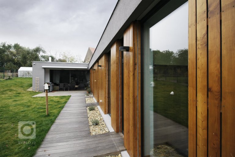 Navrhovaný objekt je citlivě zasazen do území, dbá na pozitivní využití výrazné morfologie pozemku a snaží se být pokorný k místu i okolí. Výrazně svažitý terén a snaha o zachování jeho původní modelace umožnily zapustit část nadzemního obytného podlaží pod okolní úroveň. Dům tak splývá s pozemkem,…