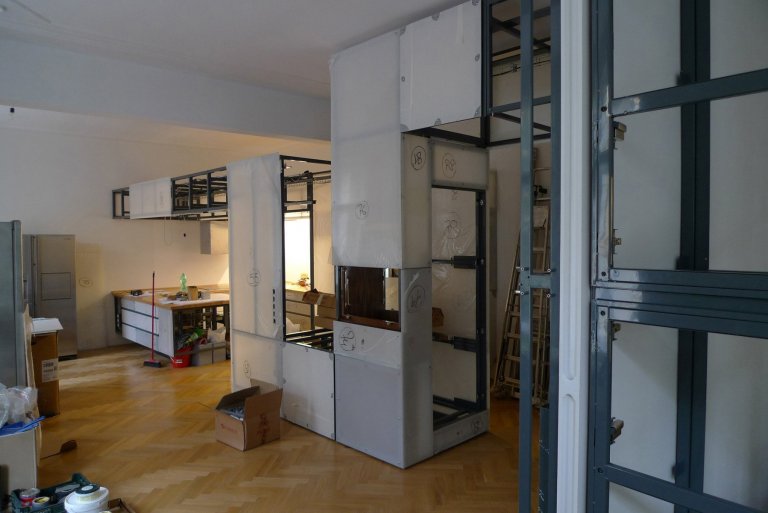 V době svého vzniku byl v prvním patře secesního činžovního domu jeden byt. V éře komunismu brutálně a necitlivě rozdělen na tři jednotky. Klient koupil tato tři torza a stanovil jednoduché zadání: vytvořit opět jeden fungující celek, soudobé bydlení v symbióze s původním jádrem.