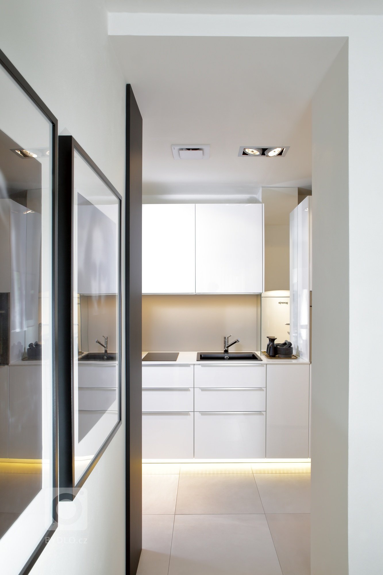 Byt prošel kompletní rekonstrukcí, Zachovali jsme však původní parkety v obývací části a zrcadlo nad sedací soupravou. Odstup sádrokartonového podhledu u oken umožňuje zakrytí lišty pro závěsy a zároveň vsazení LED osvětlení, které dotváří příjemnou atmosféru v pokoji. .Za zrcadlem vedle…