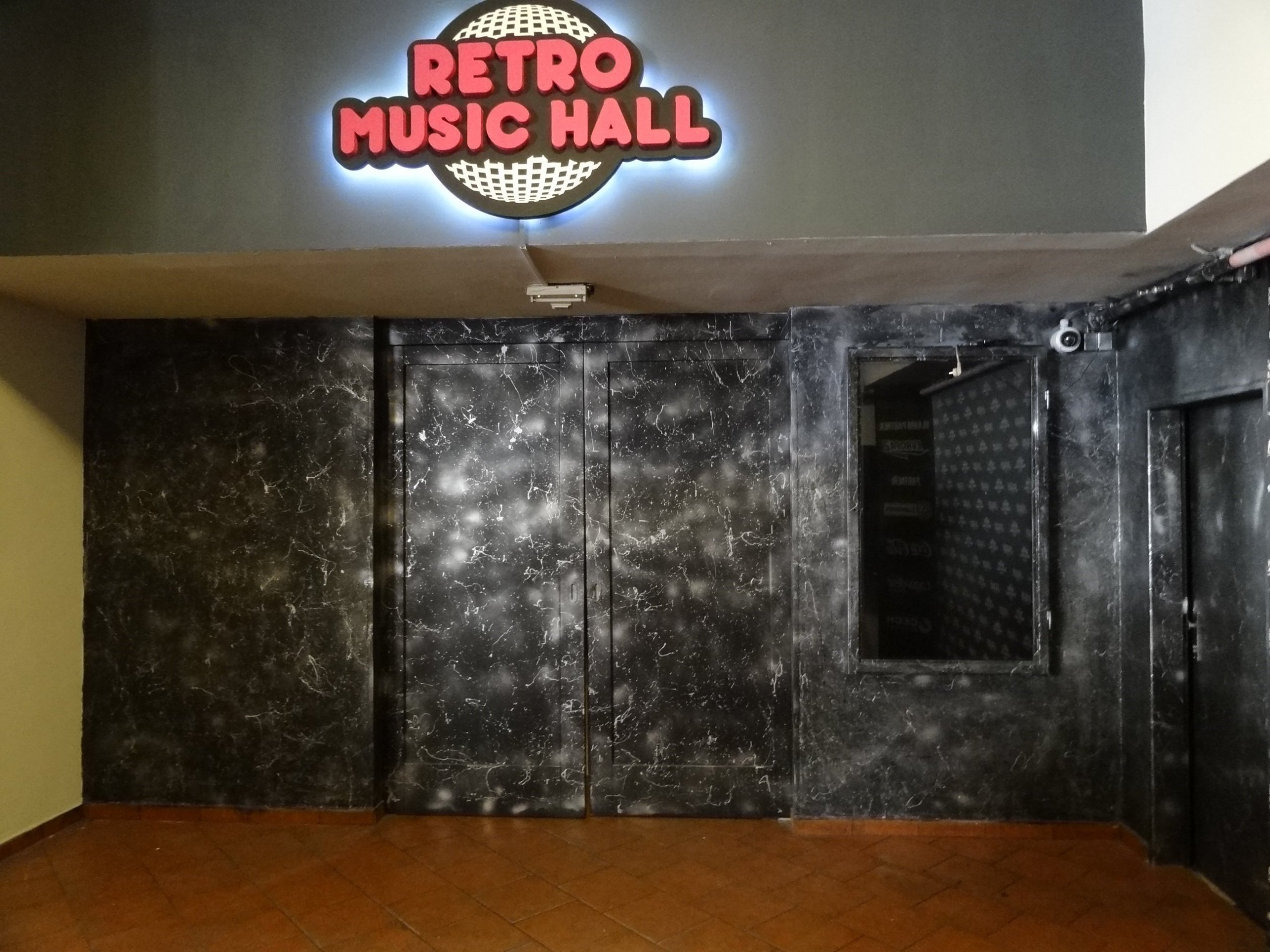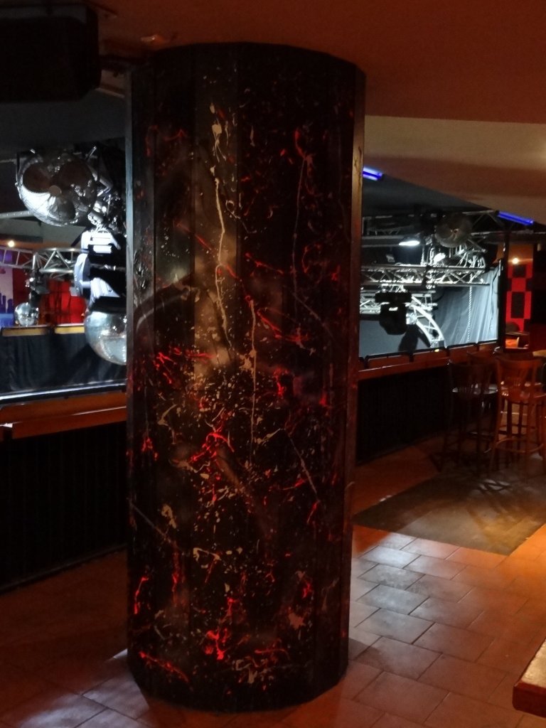 ručně dekorovaná vstupní zeď music klubu, dekorace 9 sloupů a VIP baru
