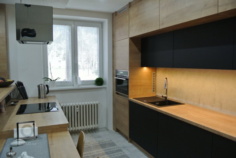 Návrh a rekonstrukce kuchyně a obývacího pokoje ve starší cihlové zástavbě.