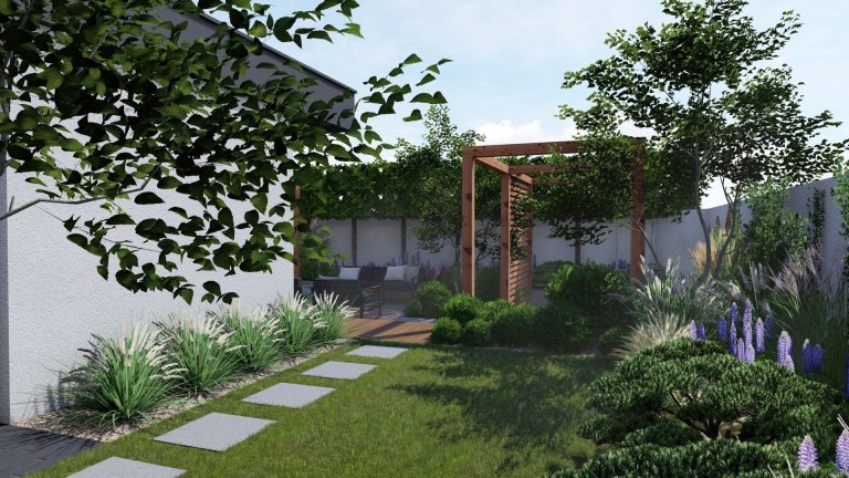 Zahrada má být prostorem pro relaxaci, zábavu a místem setkávání s přáteli nebo rodinou. Z tohoto důvodu byl celek rozdělen do několika zón, díky nimž má i tak malý prostor zajímavý program, je dynamický a atraktivní a každý si v něm najde své místo. Prostor malé zahrady u domu, kde jedním z hlavních cílů bylo – zvětšit prostor bytu o další „místnostmi“, které budou využívány během sezóny.