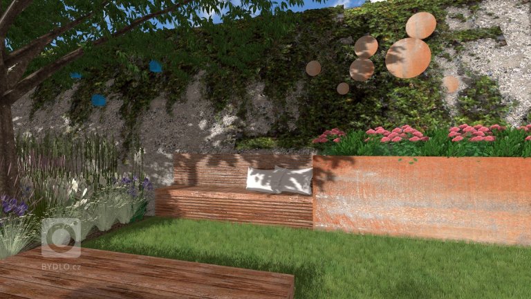Koncept zahrady byl vytvořen na základě očekávání investorů, ale z velké části na základě nápadů návrháře, jež neměl jednoduchý úkol. Terén, na němž měla nová zahrada vzniknout, není jednoduchý. Poměrně malý prostor je velmi členitý a ke všemu tyto výškové rozdíly jsou zdůrazněny podpůrnými stěnami…