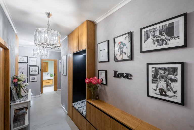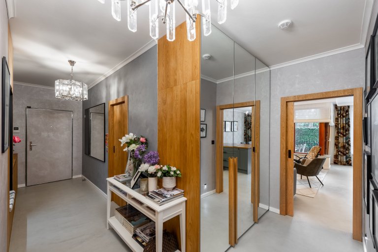Jednou z hlavních částí bytů je vstup - a tento je velkorysý. Na levé části šatna, na pravé nika s úložným prostorem. Hlavní chodbou se potom vchází do všech obytných pokojů - ložnic, koupelny i obývacího pokoje. Za zrcadlovými dveřmi skříně je ukryta pračka a susička tak, aby nerušily design koupelny.