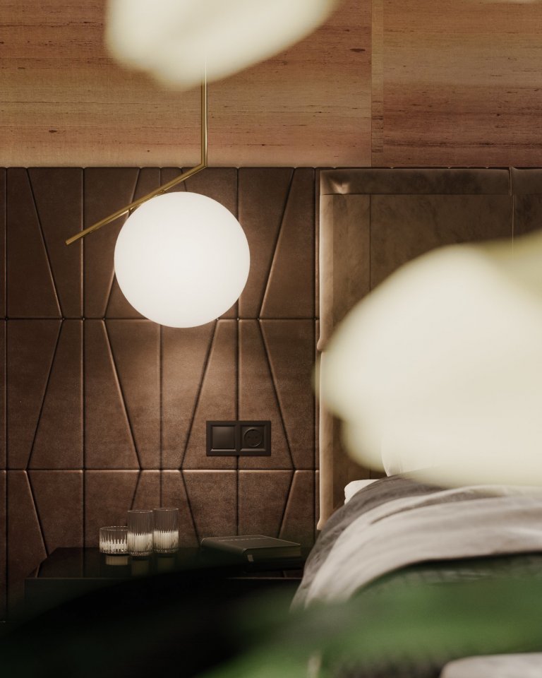 Použitím velkého množství textilu, čalouněného obložení stěny, koberců a intimního osvětlení vznikl prostor pro příjemný spánek a relaxaci a zároveň jsme úspěšně překonali akustické problémy.