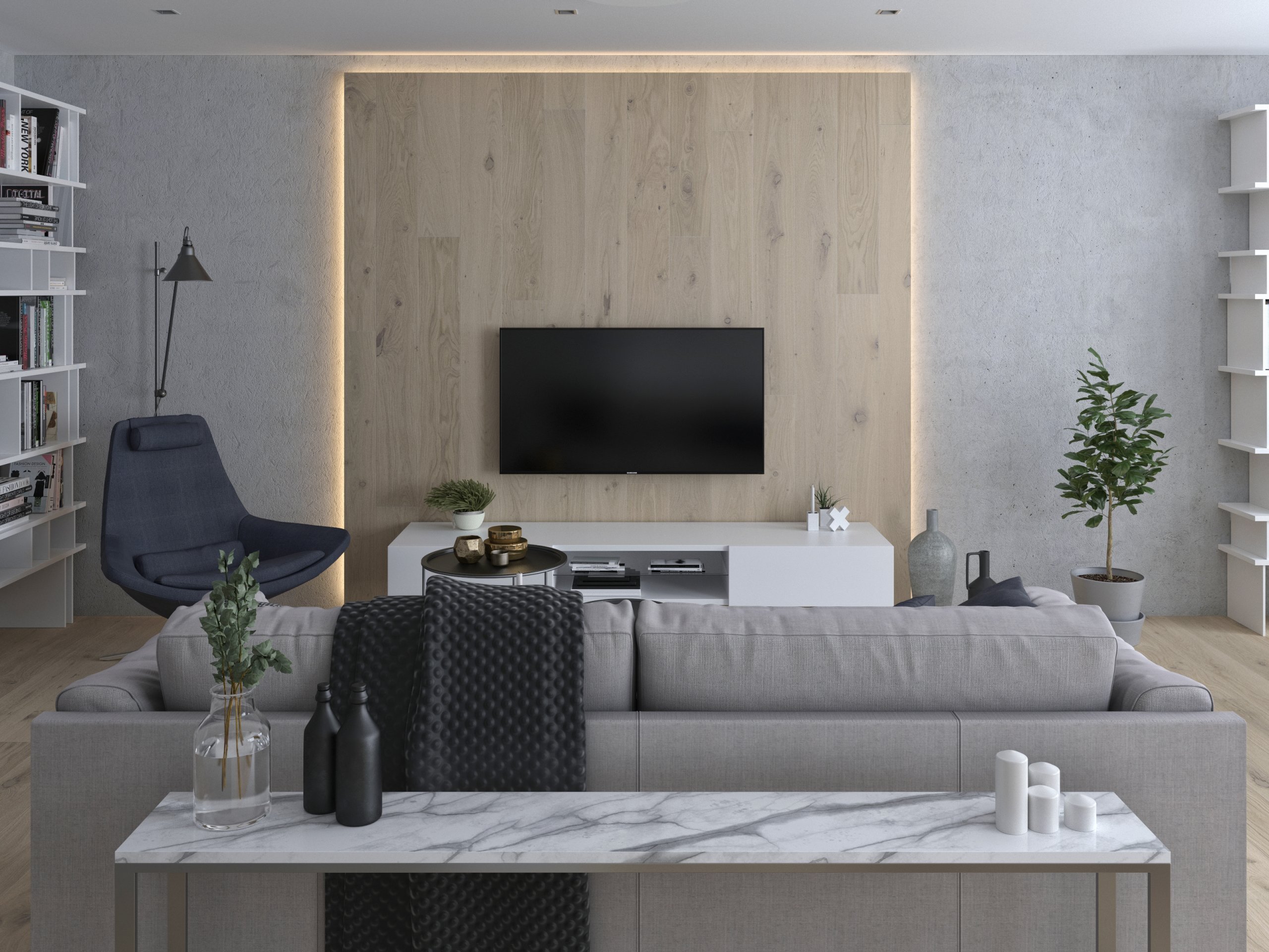 Kompletní návrh rekonstrukce apartmánu pro klientku, která žije většinu času v přírodě a do Prahy jezdí na schůzky.