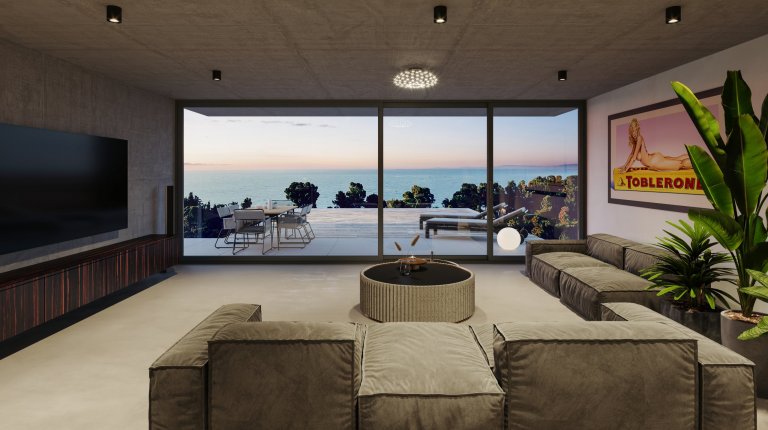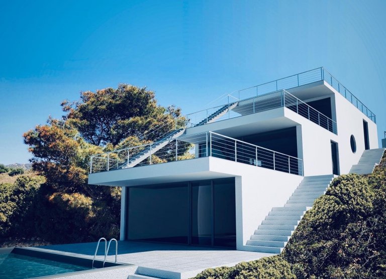 Návrh interiéru pro klienta, který v současné době staví 3 podlažní vilu vsazenou do skalnatého terénu Sardinie. Jeho přání bylo zachovat loftový vzhled 2 pater a nechat maximálně vyniknout výhledy na moře.