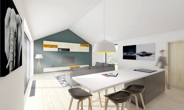 Už dnes si môžete prísť pozrieť vzorový dom Motiv, jeho štandardné vybavenie, ako i nábytok, ktorý dodávala naša spoločnosť. Výnimočnou vlastnosťou tohto typu domu je veľká technická miestnosť a netradičné umiestnenie kuchyne v otvorenom priestore s obývačkou.