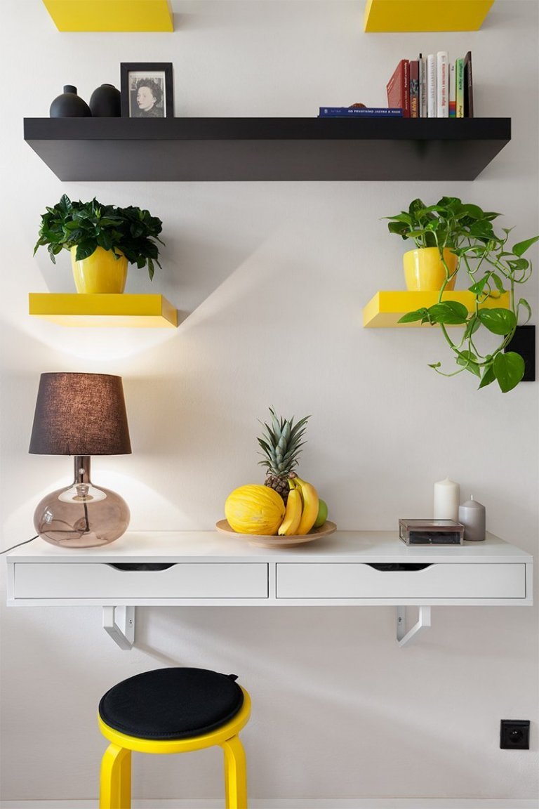 After purchasing an apartment in a hip Prague neighborhood in 2009, a Czech media professional kept it mostly the same. Then last year, he asked his Italian partner, who happens to be our founder Daniele, to help redesign the entire 45-square-meter (484-square-foot) space on a small budget. Doing most of the work themselves, except electrical and plumbing, the pair were able to save a lot of money. They also mixed budget-friendly IKEA pieces with vintage finds that were fixed or reupholstered to save money while still creating a cool modern interior. The young, but sophisticated vibe benefits from the use of a fresh color palette, that included yellow, blue, aqua, dark grey, and black.
