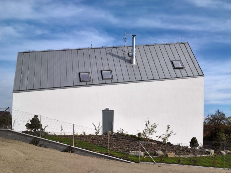 Nová ulice v mírném kopci, na okraji obce Struhařov, dostala jméno Větrná, což dostatečně vystihuje místní mikroklima. I přesto, že jsme ve středočeském kraji, mívají zdejší v zimě nadstandartní nadílku sněhu. Nebránili jsme se proto místnímu regulativu na šikmou střechu, ačkoli vycházel z přesvědčení, že tvar střechy udává charakter obce, měl pro nás opodstatnění spíše s ohledem na podnebí.