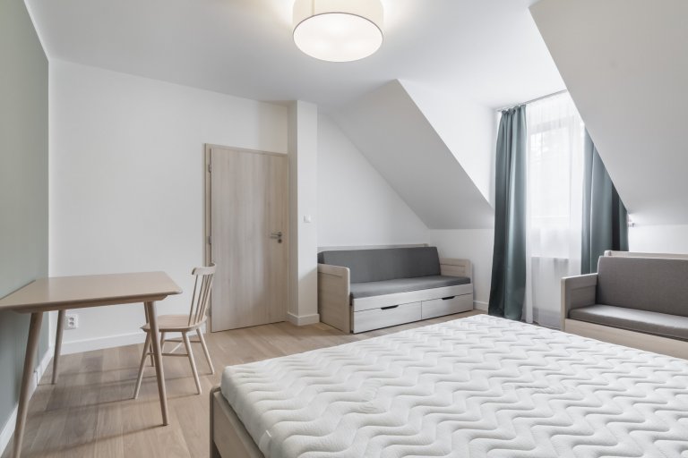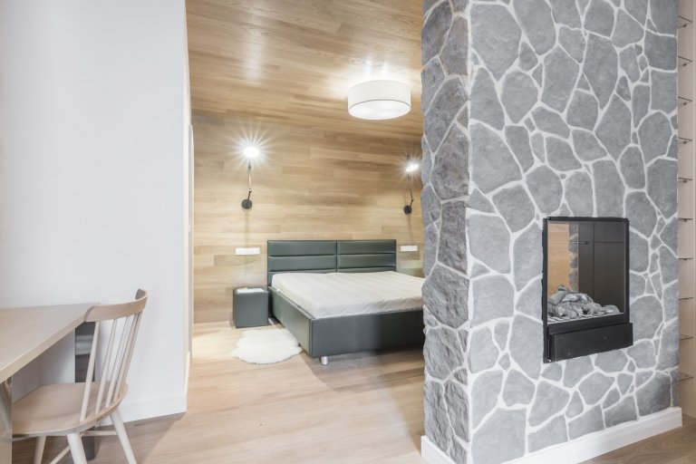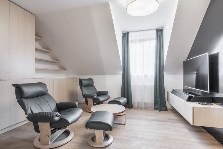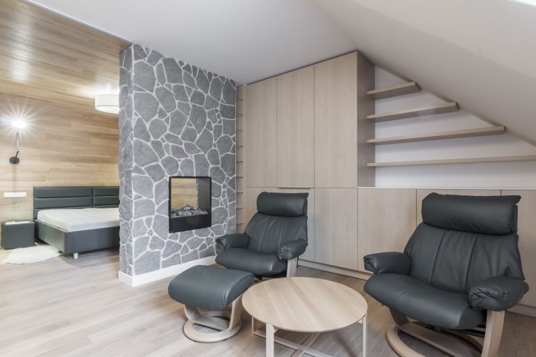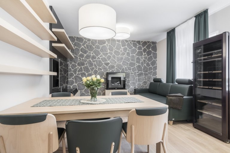 Proměna horského apartmánu pro stávající majitele. Zadáním bylo vytvořit útulný prostor s koupelnou navíc a rozdělením mezonetové jednotky na část pro majitele a část pro hosty.