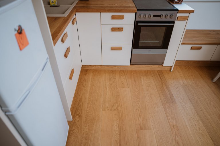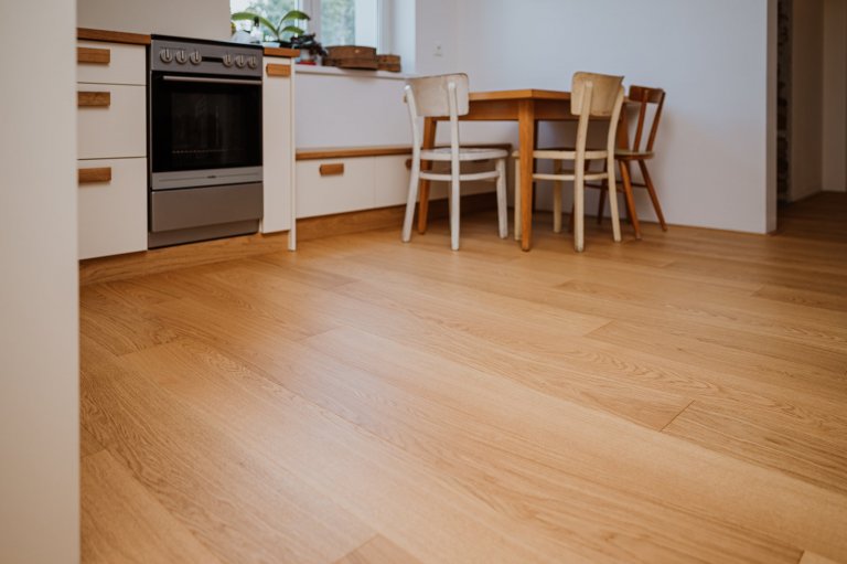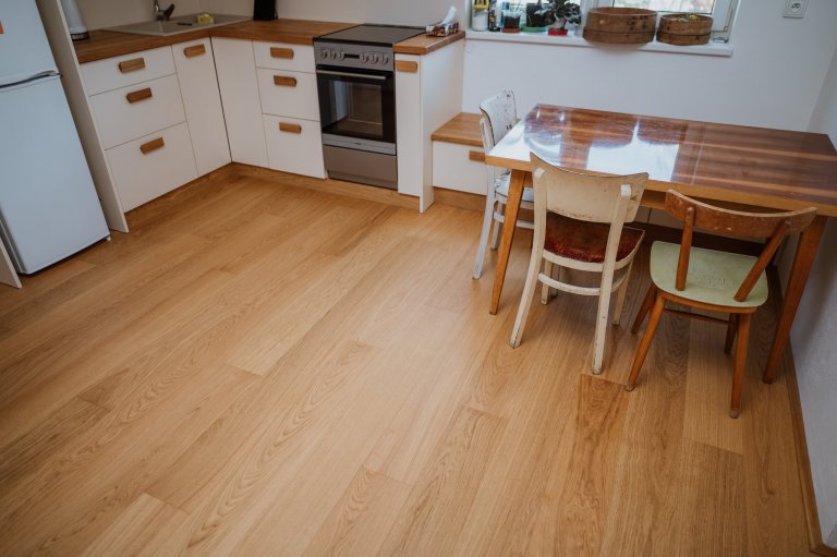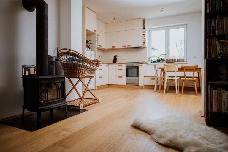 Zvolena byla naše podlaha Select - PURE matná, jejíž čistý a suky nerušený dekor do tohoto konceptu skvěle zapadne.