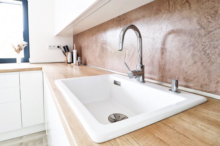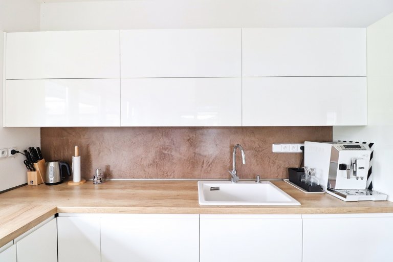 Velmi praktickým a designovým řešením je použití dekorační plně omyvatelné stěrky.
