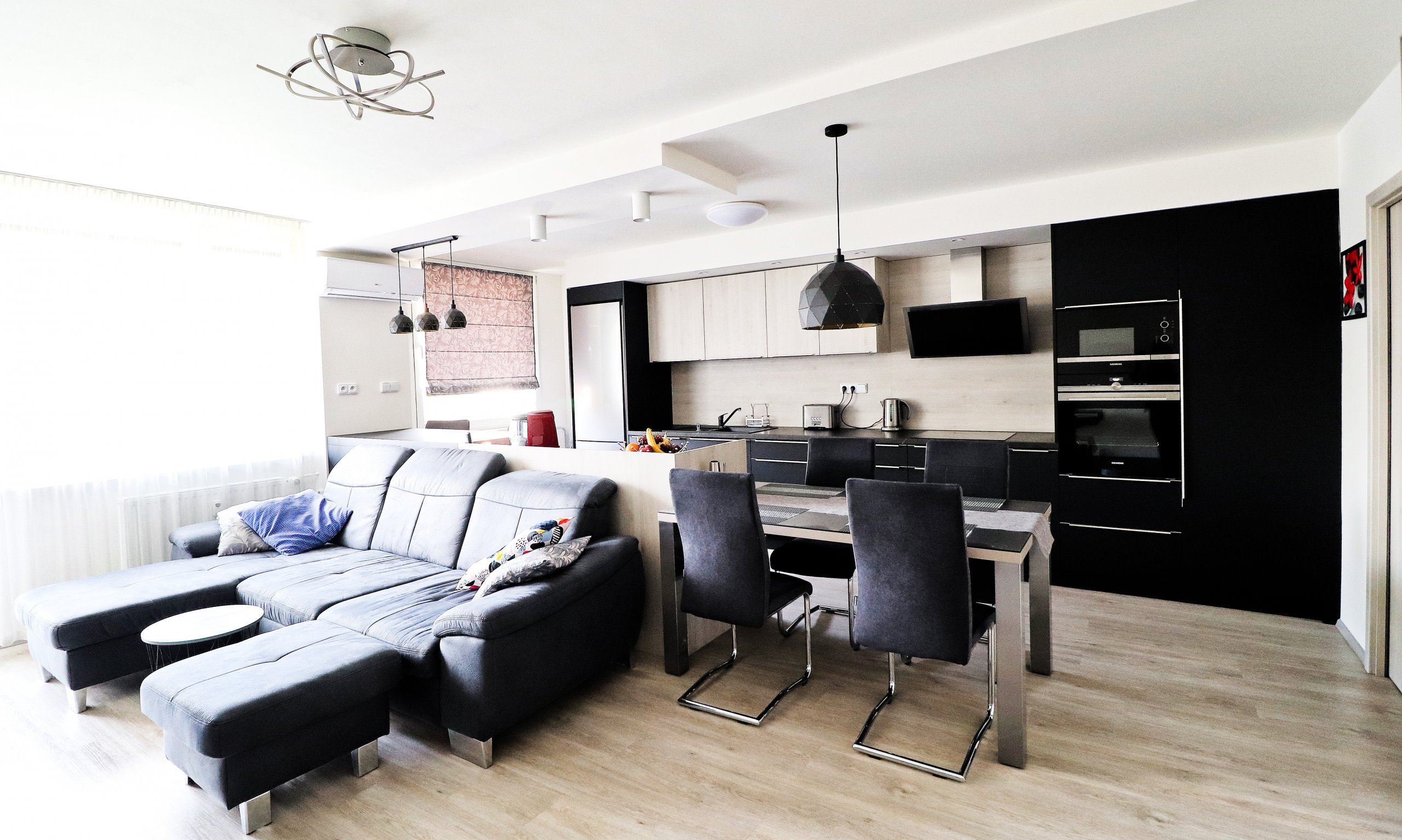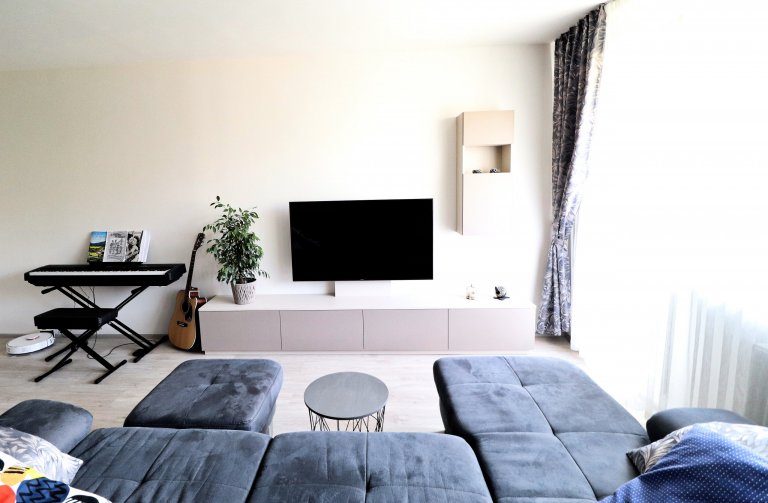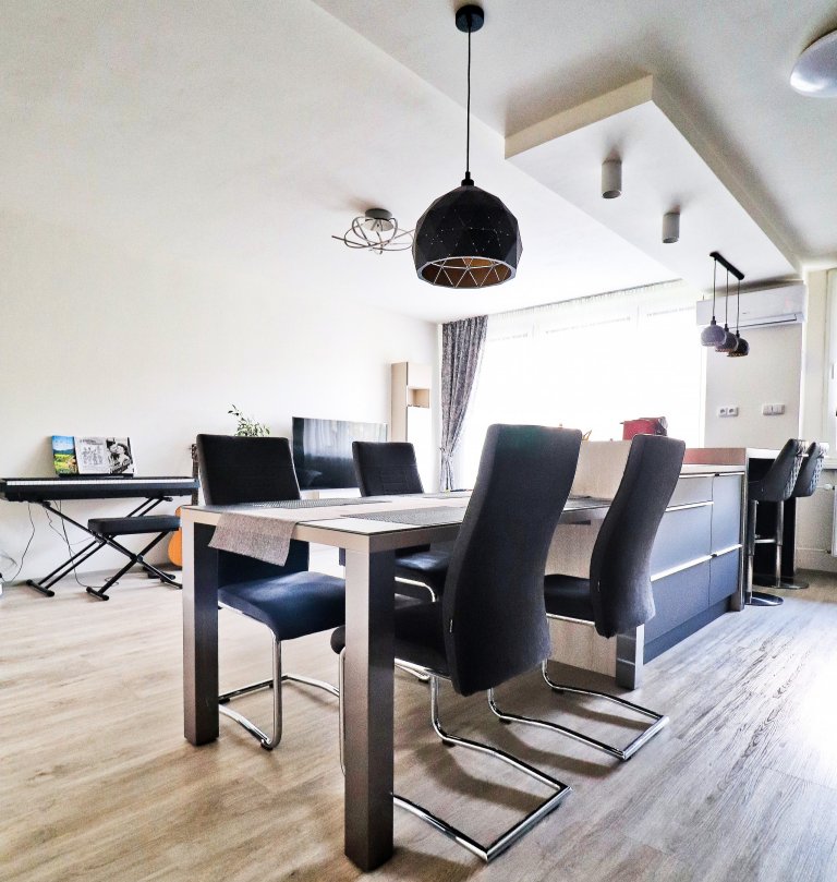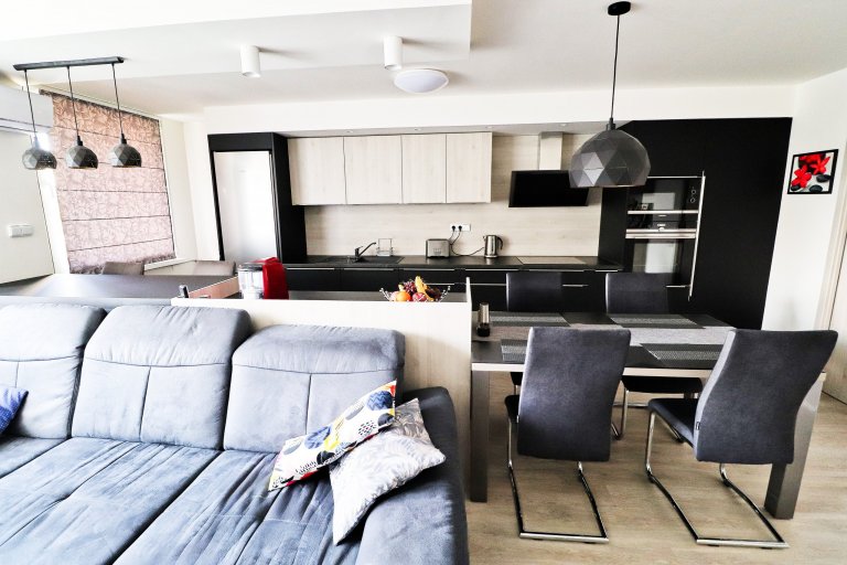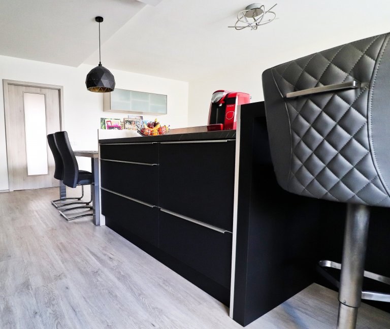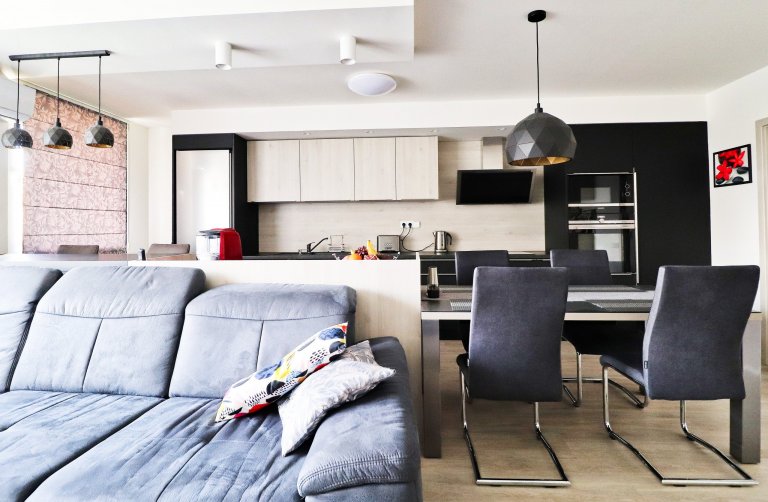 V tomto nově zrekonstruovaném bytě jsme pro mladou rodinu vytvořili místo nejen pro kulinářské dovednosti a stolování. Společně si zde rodina také oddechne u oblíbených filmů či hudby.