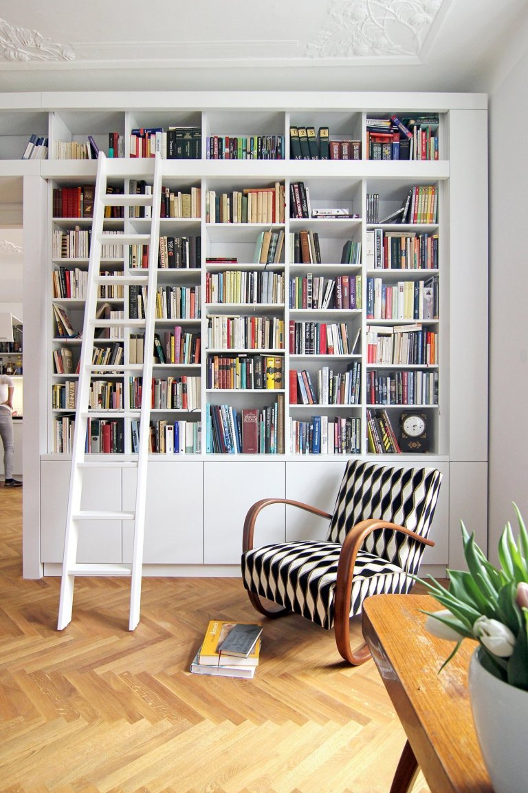 Cílem rekonstrukce bylo vytvořit moderní interiér s kouzlem starých časů. Toho bylo dosaženo pečlivým restaurováním všech historických prvků, jako jsou dveře, kliky nebo štuky na stropě, a volbou takových nových prvků (knihovna, kuchyně), které svou střídmostí dají vyniknout tomu starému a osobitému, co v bytě bylo, nebo co majitelé s láskou sehnali ve starožitnictvích nebo zachránili u kontejnerů.