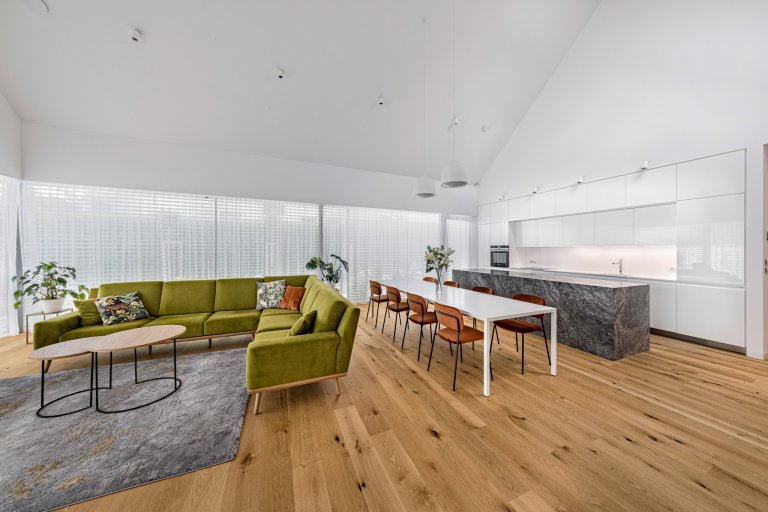 Vysoce kvalitní spotřebiče jsou dekorací každé kuchyně. Varná deska Siemens s flexInduction, na které nenajdete definované zóny vaření. Kdekoli na něj hrnec položíte, funguje tam, čímž poskytuje maximální svobodu v kuchyni. Chladnička Liebher s nulovou zónou prodlužuje trvanlivost potravin a digestoř zabudovaná do horní skříňky je praktickým pomocníkem skrytým před očima místních obyvatel i návštěvníků.