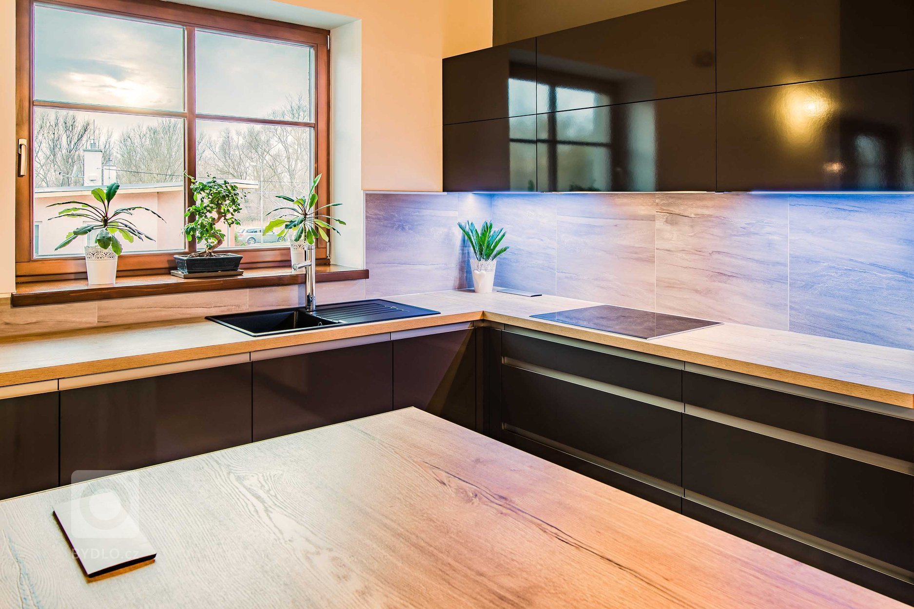Zajímavá kombinace černé se světlejším dřevem. Černá dodává kuchyni elegantnost a styl, dřevo útulnost a teplo domova. Společně se tyto materiály doplňují a představují atraktivní a vkusnou variantu moderní kuchyně. Ostrůvek uprostřed poskytuje i v menších kuchyních dostatek pracovní plochy a…