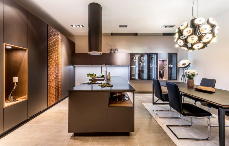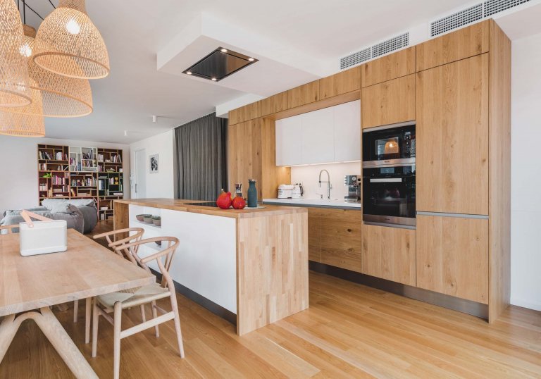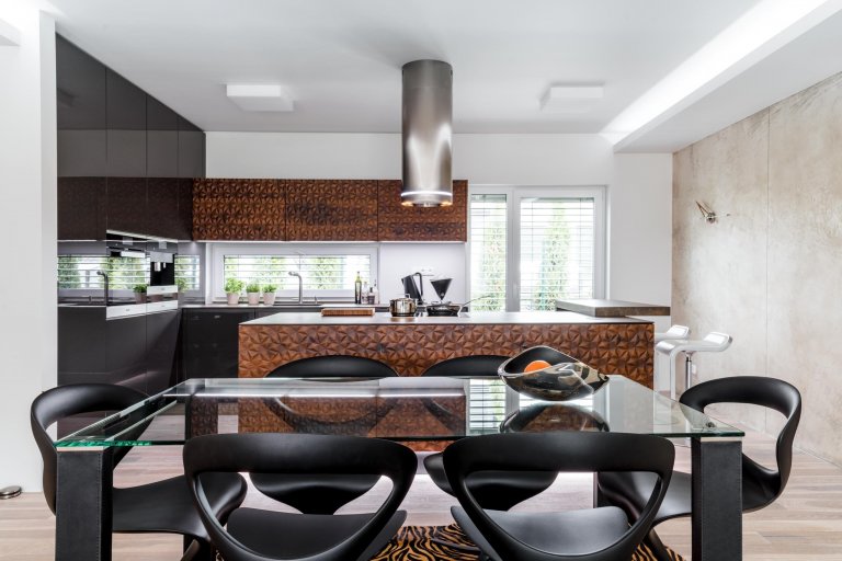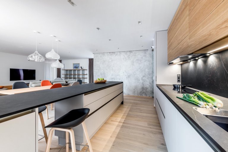 PROSTORNÁ KUCHYNĚ V NEOKOUKANÉM DESIGNU Z EXKLUZIVNÍCH MATERIÁLŮ