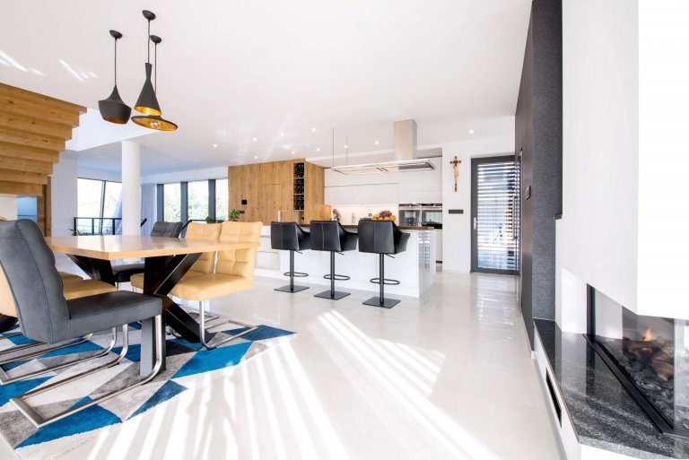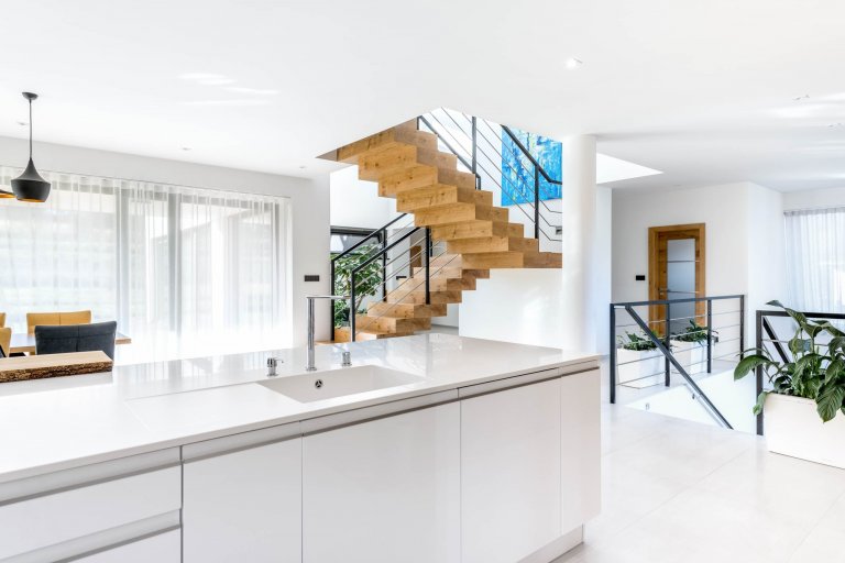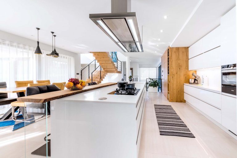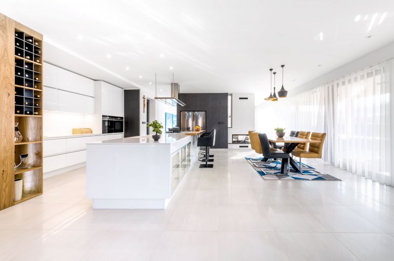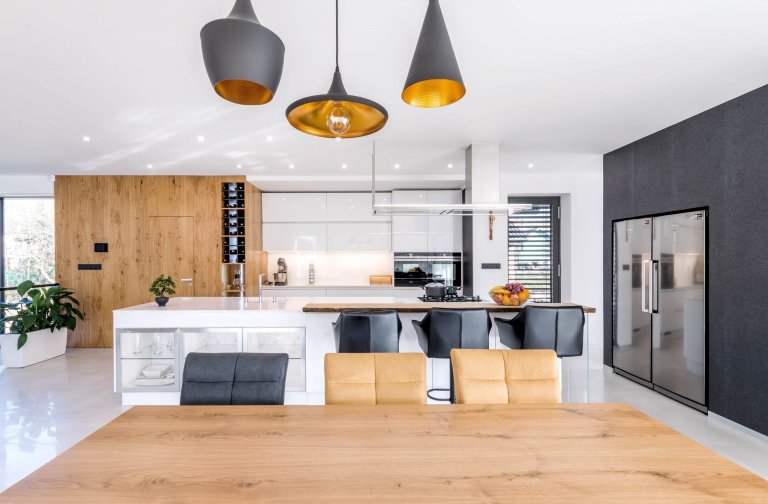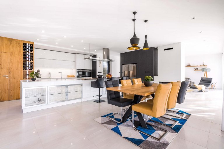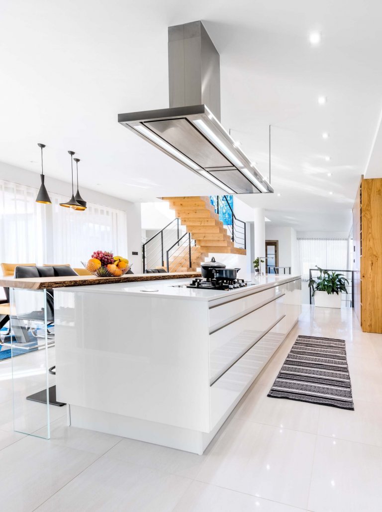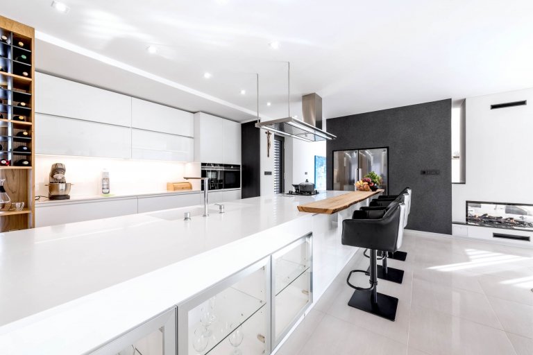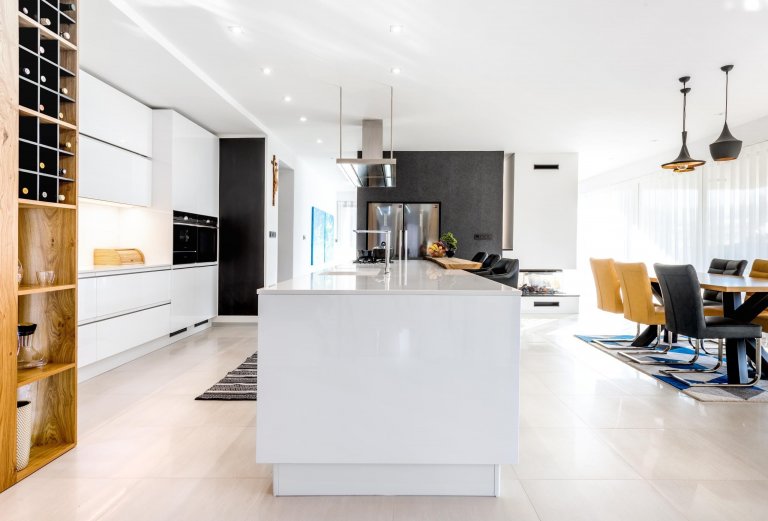 Velký prostor pro kuchyni je vždy výhra. Rozsáhlý kuchyňský ostrůvek má v této kuchyni několik využití. Vypadá skvěle, slouží k vaření, mytí, přípravě i pro příjemné posezení.