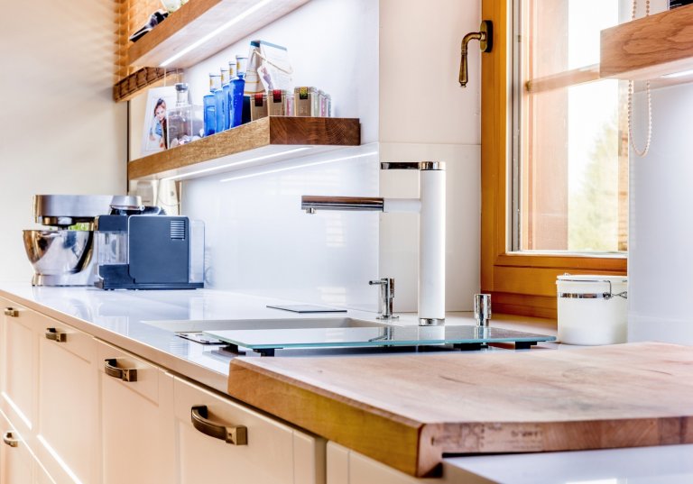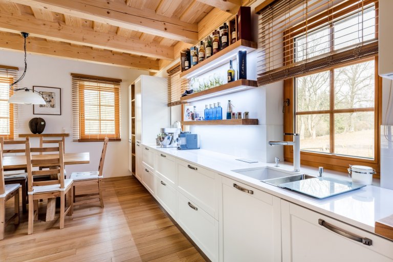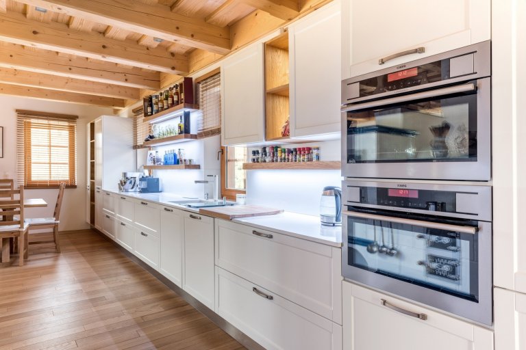 Jako v pohádce. Masivní dubové plochy, lakovaná dvířka v bílém matu a poctivé charisma dřeva tu doplňují moderní technologie. Když chcete zůstat za pecí, díky svým inteligentním funkcím se o vše postarají za vás. Zastavil se tu čas a zároveň o hodně předběhl svou dobu.