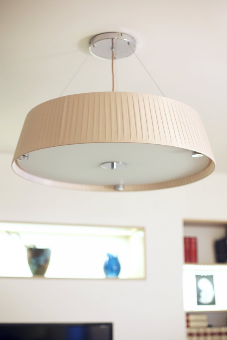 Renovace obývacího pokoje s jídelnou v rodinném domě ve středočeském kraji. Ta zahrnovala výrobu nábytku na míru z lakované MDF, dekorování stěn tapetami a betonovou stěrkou, nákup nového nábytku, osvětlení a dekorací. Požadavkem majitelů bylo použít jemné neutrální tóny jako béžová, bílá, šedá. Shodli jsme se ale na ožívení výraznější barvou, petrolejovou, která je použita na křesle a na dekoracích a doplňcích.