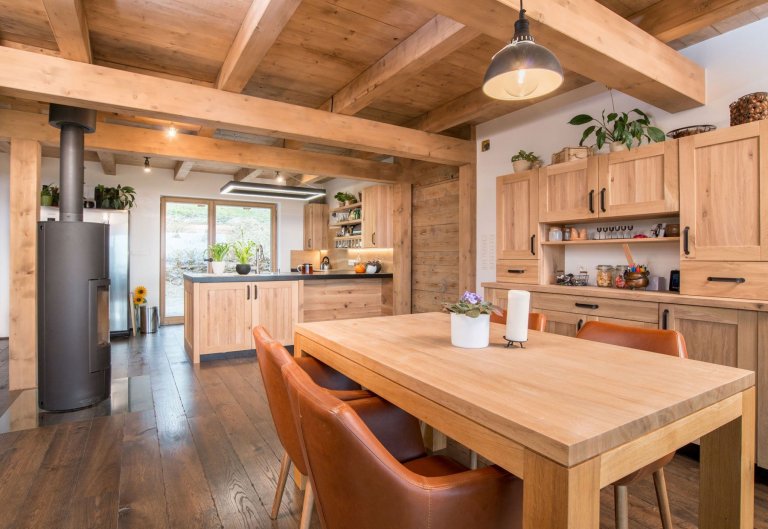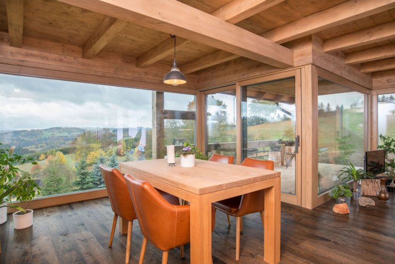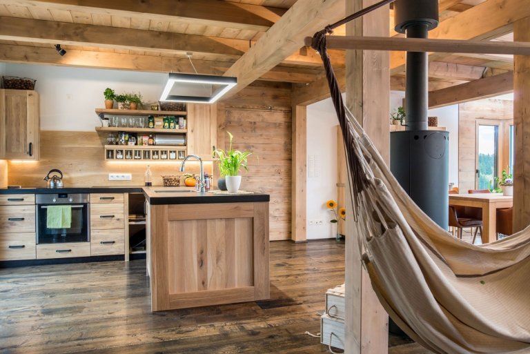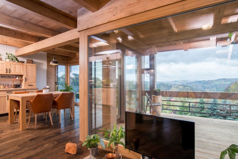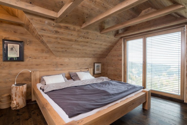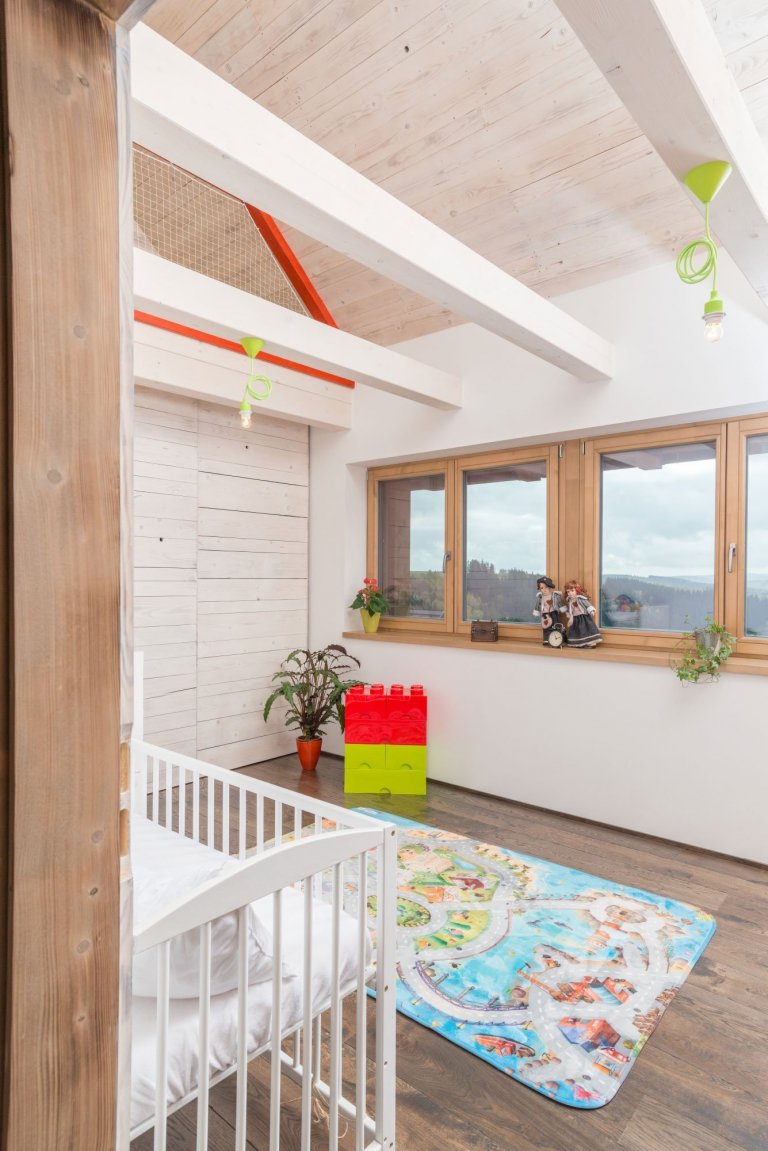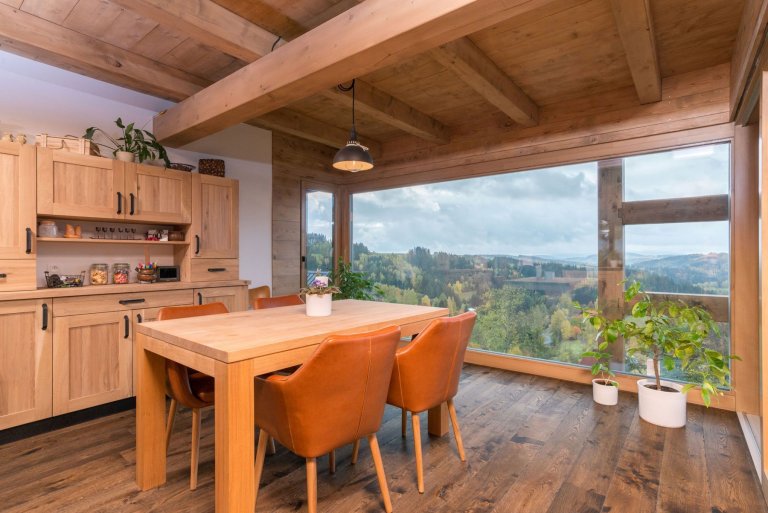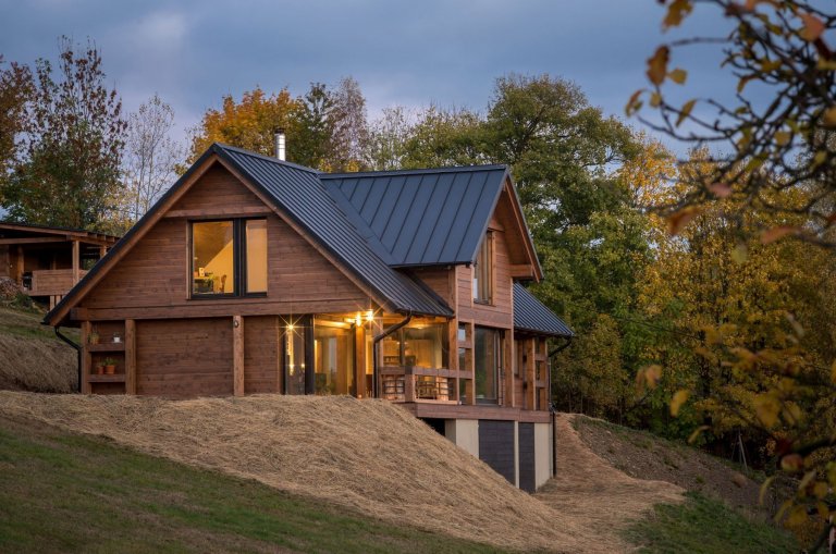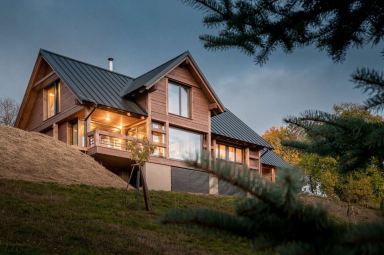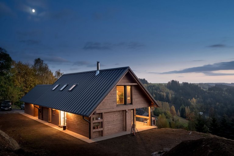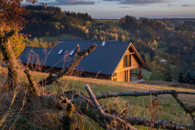 Rodinný dům na nejvýše položeném pozemku v rodné vsi si Eliška s Milanem postavili ve stylu odlehčeného chaletu, navržen a postaven do českých kopců. Vypadá přesně tak, jak bychom čekali od domu člověka, který staveb z těžkého dřevěného skeletu realizoval už téměř stovku.