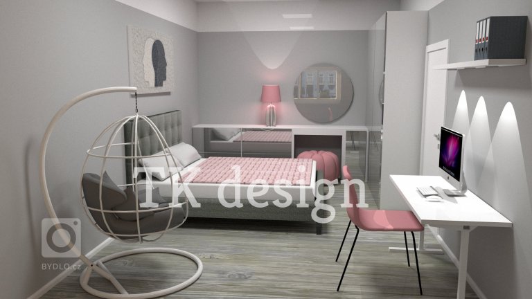 Zrcadlové skříňky dohromady tvoří šatní skříň, komody i toaletní stolek. Ušetří nám spoustu místa a ještě prostor opticky zvětší. :-)