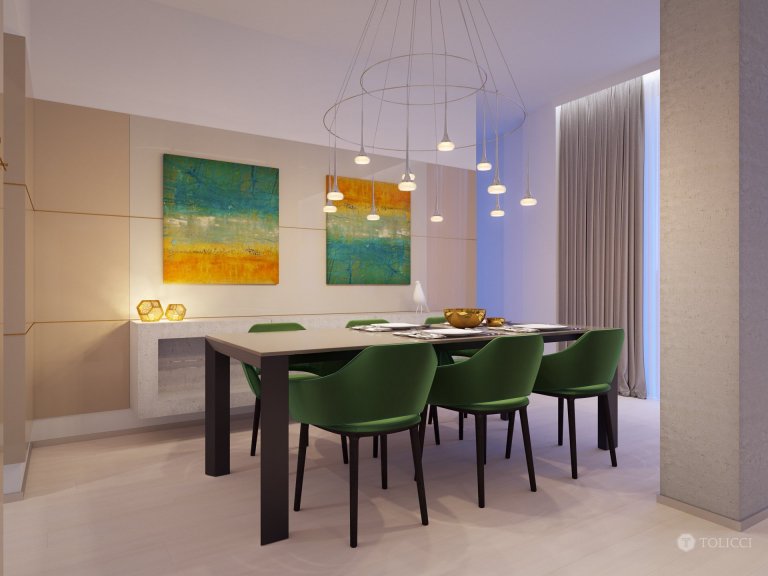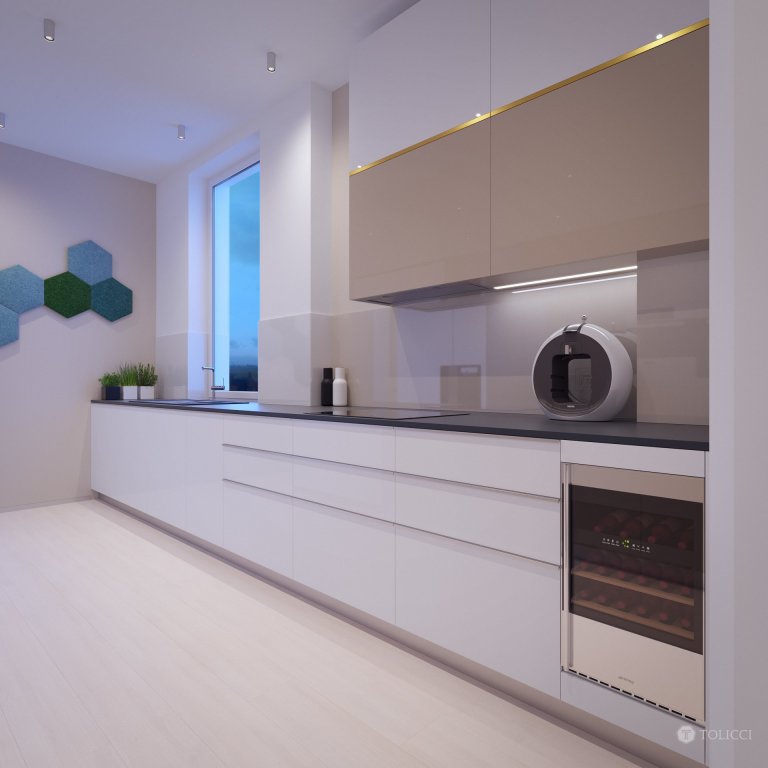 Cieľom návrhu bolo vytvorenie príjemného, moderného interiéru založeného na jemných zemitých prechodoch so zacielením sa na pohodovú atmosféru bývania. Ako doplnkovú farbu zvolil klient zelenú, ktorá sa zároveň v projekte stala aj farbou kontrastnou. Pár dizajnérskych kúskov na správnych miestach a vhodné nastavenie osvetlenia oživuje priestor a pozdvihuje jeho hodnotu, všetko ruka v ruke s klientovými požiadavkami a identitou tvorby interiérov TOLICCI.
