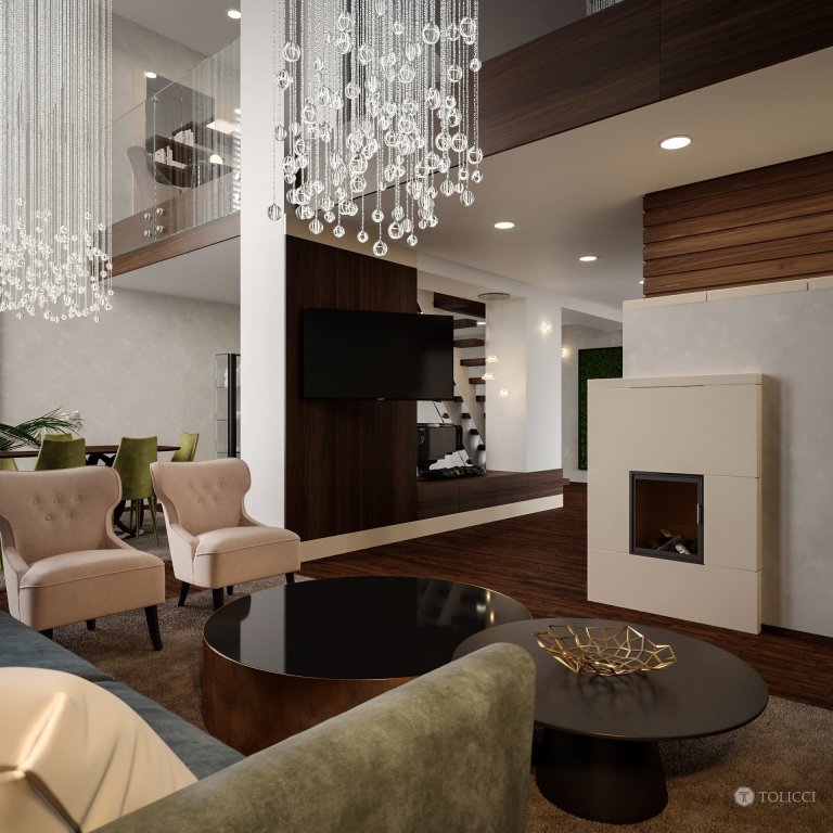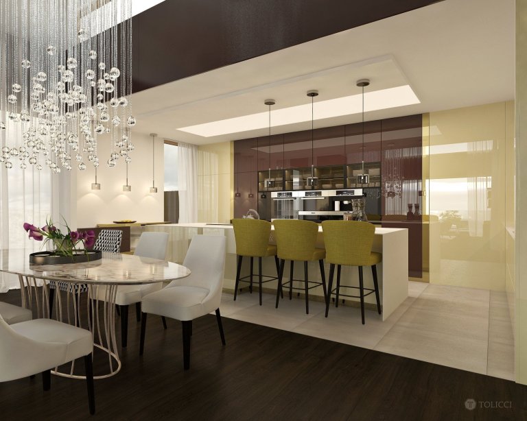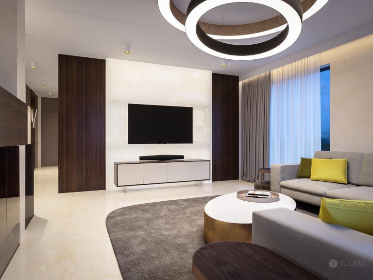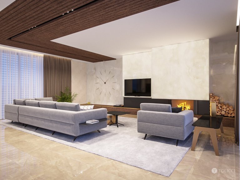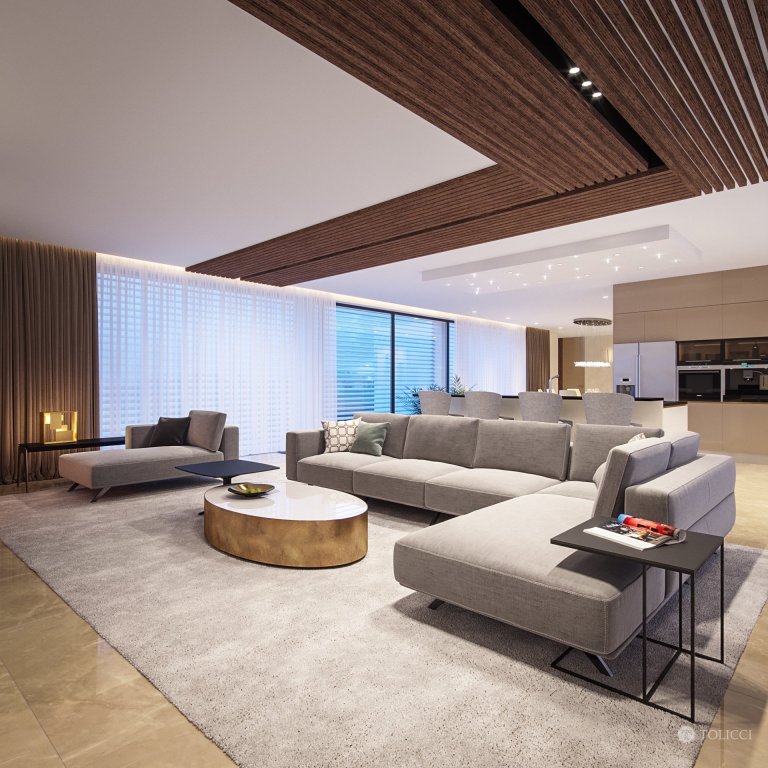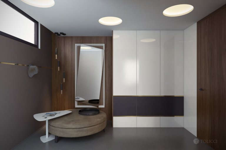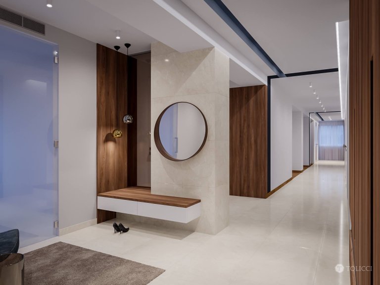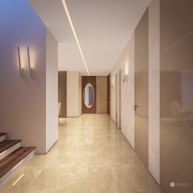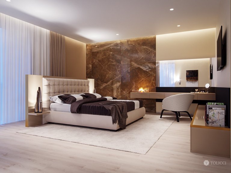 Návrh interiéru tejto rezidencie odráža splynutie krémových farebných tónov a prvkov lesku a exkluzivity arabského sveta. Ako akcenty v tomto návrhu sme na teplom farebnom podklade použili krištáľové, sklenené, zlaté a strieborné prvky. Celú dizajnovú kompozíciu dotvárajú zemité odtiene, jednoduché čisté tvary a línie talianskej elegancie v podobe zariaďovacích prvkov. Prírodné kamenné obklady a sklenené umelecké diela dodávajú priestoru jedinečnosť a exkluzivitu v súlade s požiadavkami klienta a identitou tvorby interiérov TOLICCI.