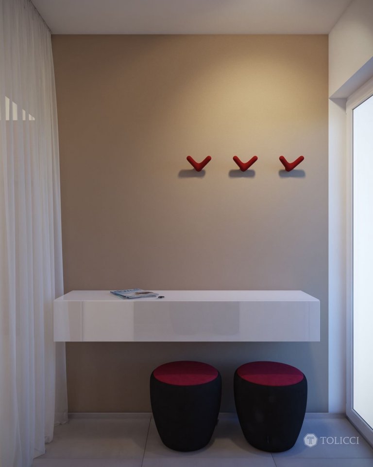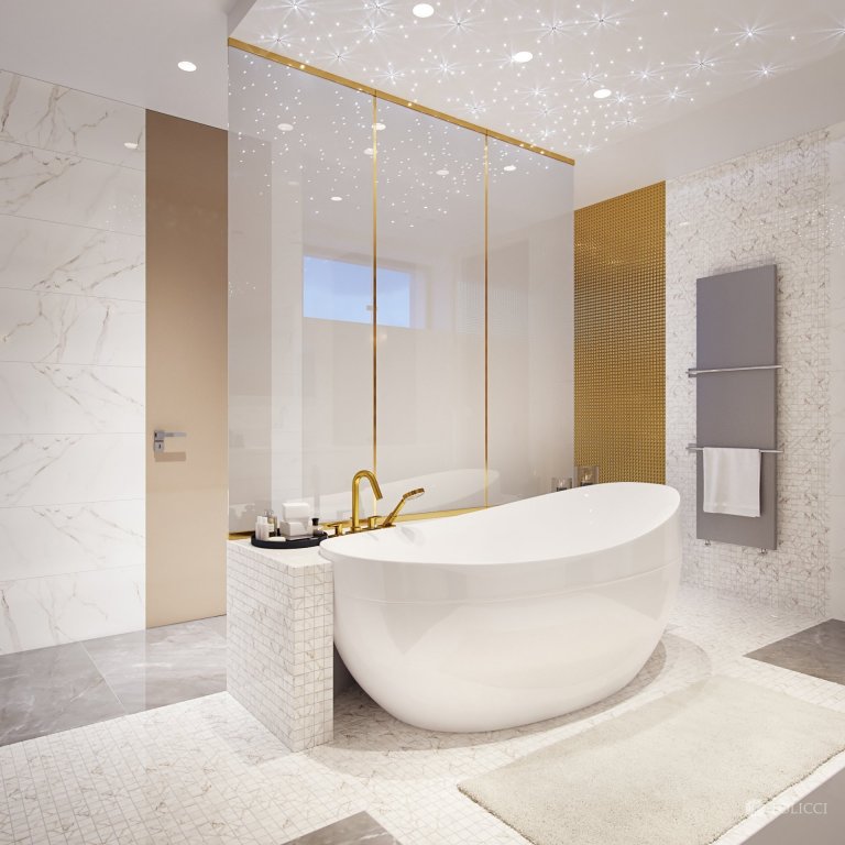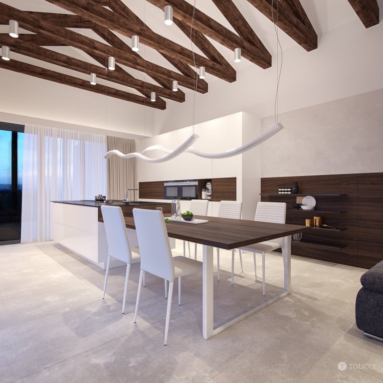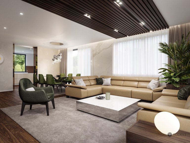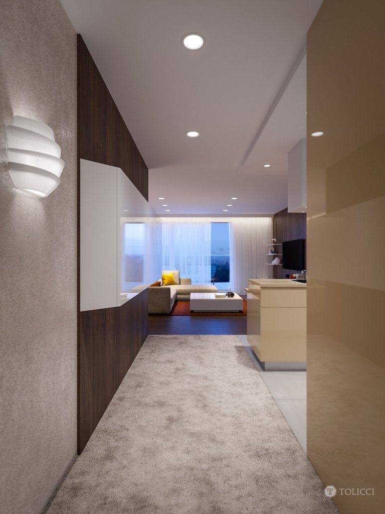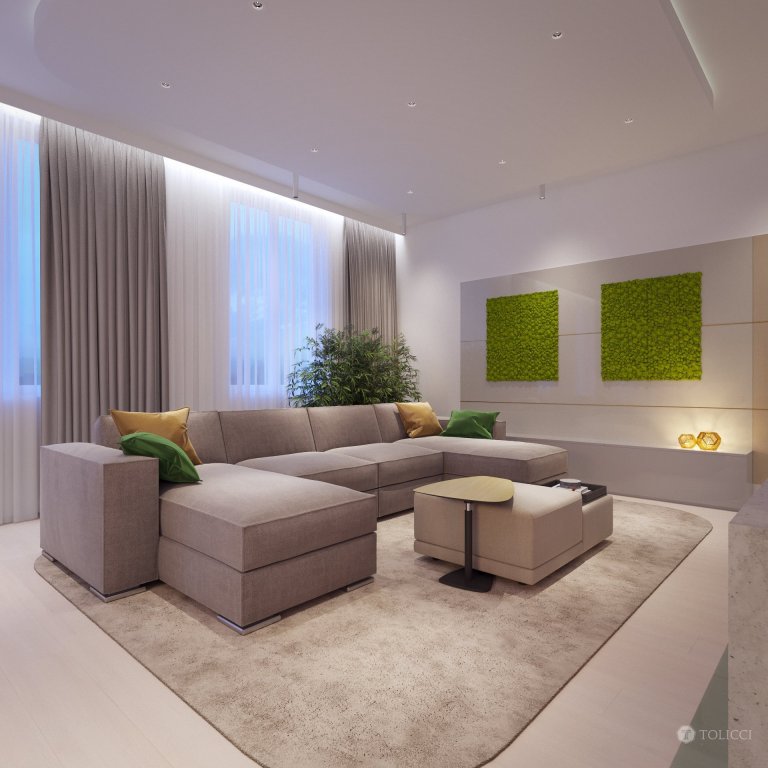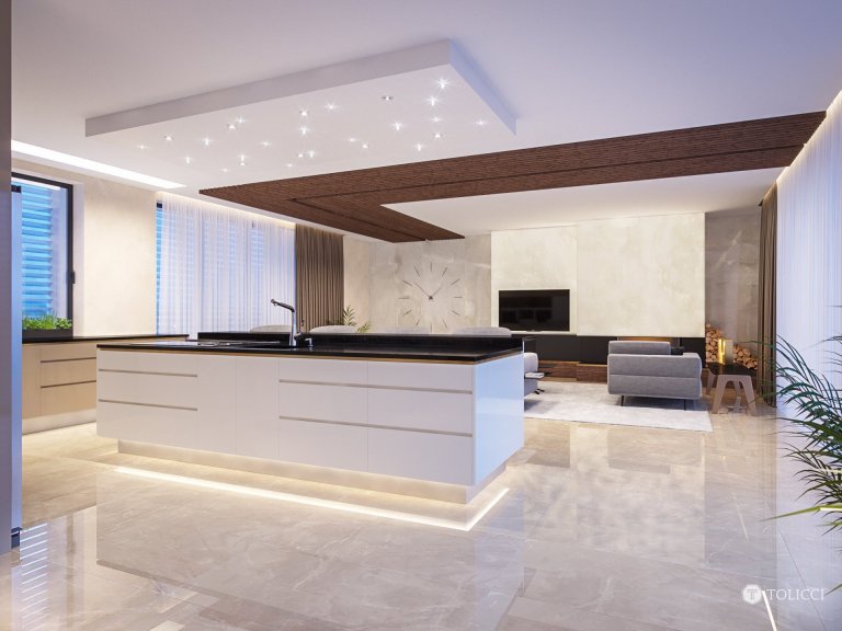 Návrh interiéru tejto rezidencie odráža splynutie krémových farebných tónov a prvkov lesku a exkluzivity arabského sveta. Ako akcenty v tomto návrhu sme na teplom farebnom podklade použili krištáľové, sklenené, zlaté a strieborné prvky. Celú dizajnovú kompozíciu dotvárajú zemité odtiene, jednoduché čisté tvary a línie talianskej elegancie v podobe zariaďovacích prvkov. Prírodné kamenné obklady a sklenené umelecké diela dodávajú priestoru jedinečnosť a exkluzivitu v súlade s požiadavkami klienta a identitou tvorby interiérov TOLICCI.