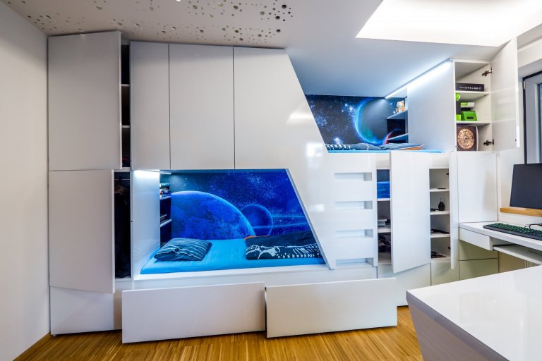 Předmětem návrhu a realizace je rekonstrukce a interier mezonetového bytu v objektu z 90. let minulého století.