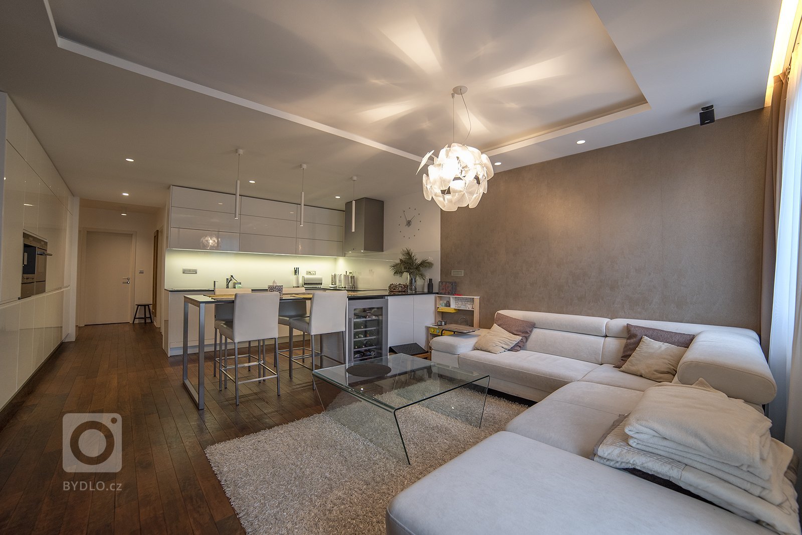 Hlavně nenápadně! To je pomyslné motto této moderní kuchyně, která se snaží splývat s okolím. A že se jí to daří! Decentní pracovní deska z kamene Zodiq spojuje kuchyňskou linku, pult i jídelní stůl v jeden celek do tvaru písmene U. Skříňky a šuplíky z bílého lamina dokonale zapadají do…